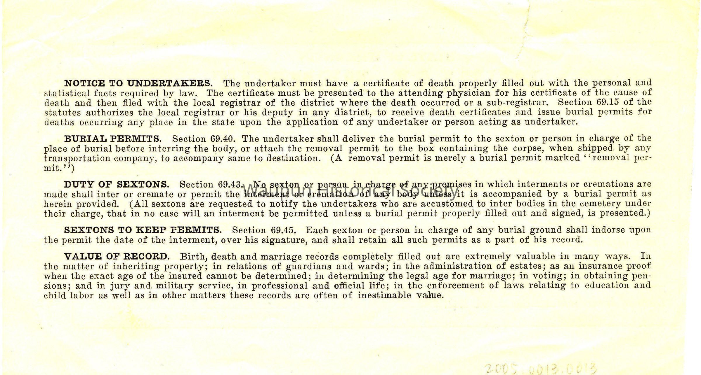 State of Wisconsin Burial Permit: Mike DrauseEntry/Object ID
