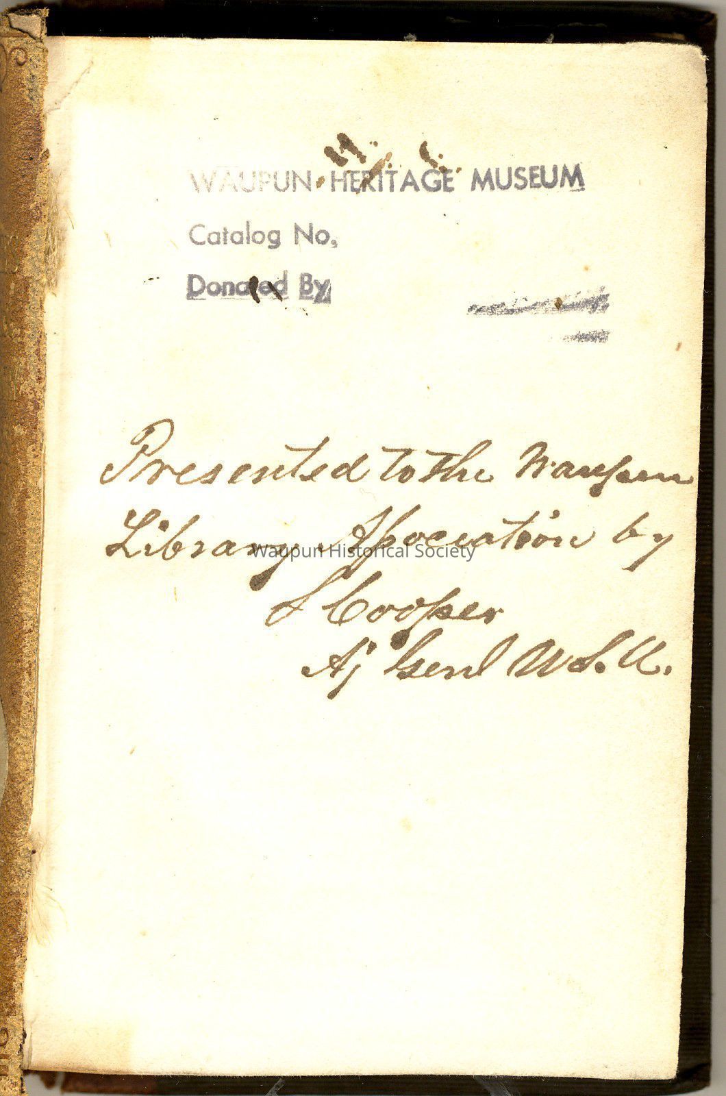 The book was donated to the Waupun Library by S. Cooper, and later found in the museum collection.