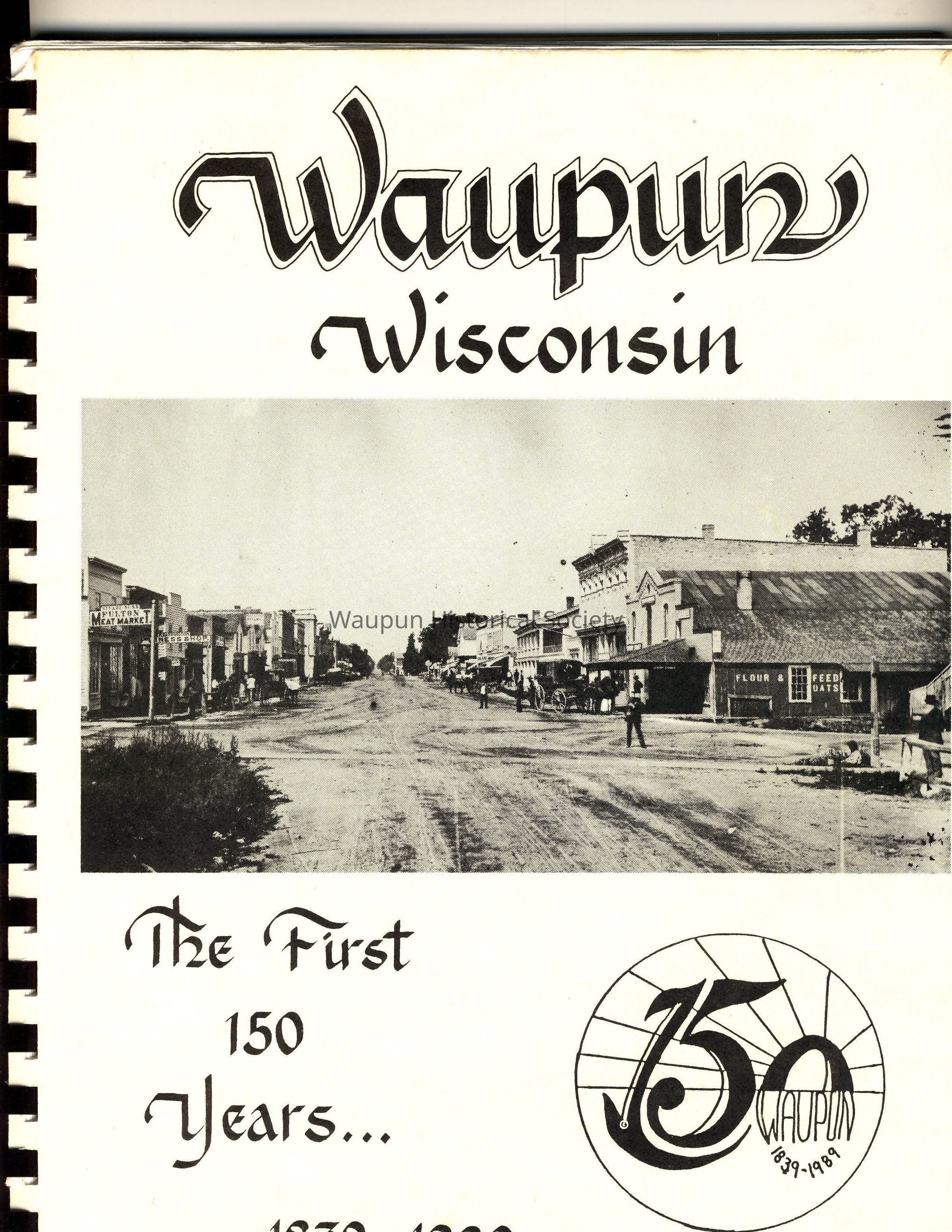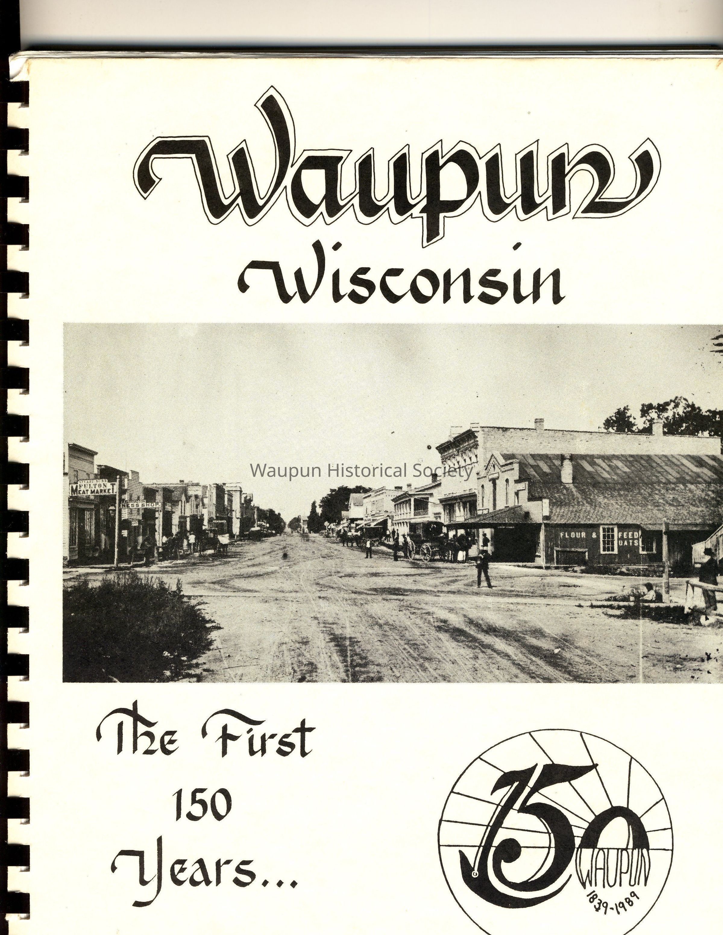 Paper-back book entitled, "WAUPUN WISCONSIN The First 150 Years" with a photo of Main Street in the mid to late 1870s as indicated in print.