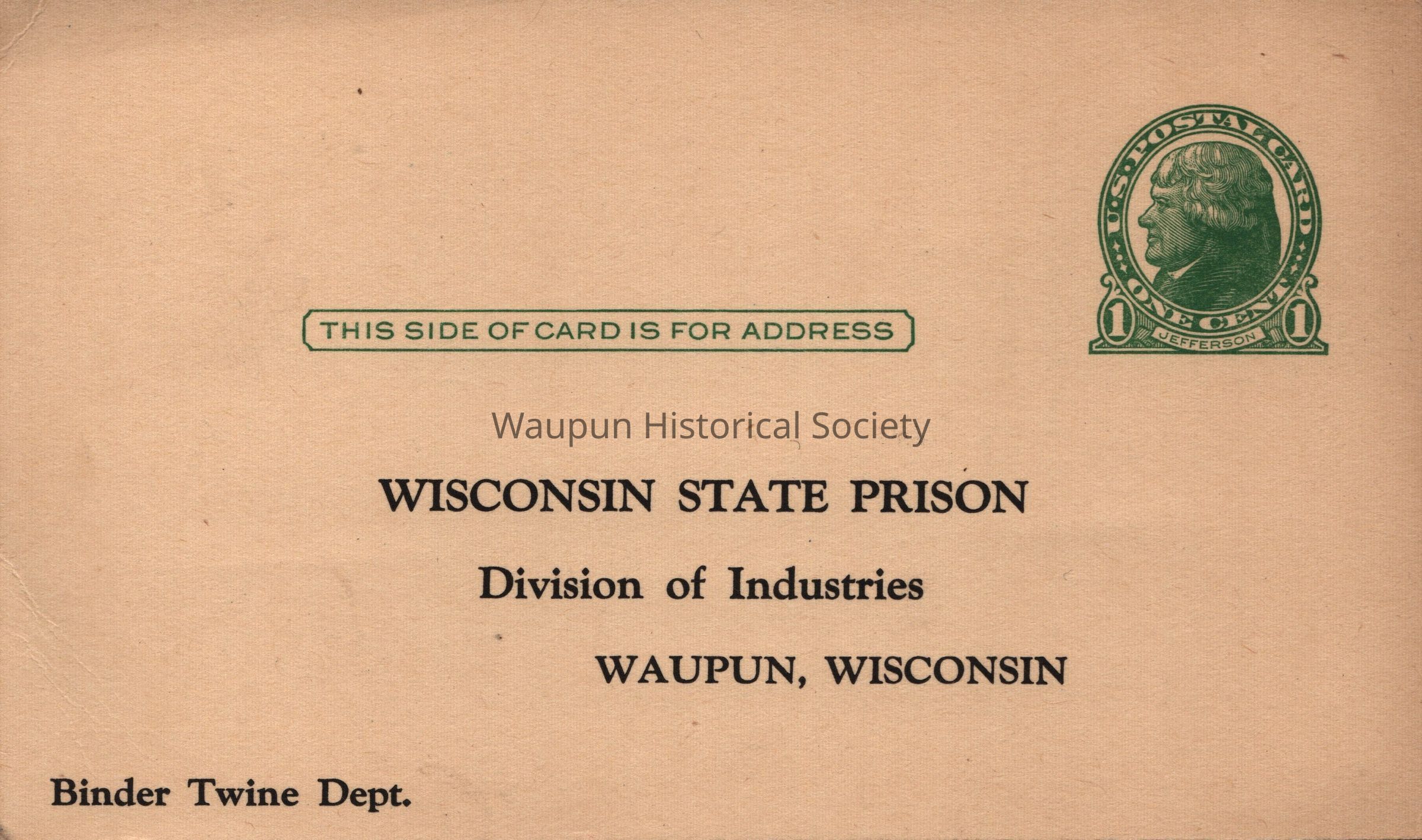 Postcard, Corrections, Wisconsin State Prison, Binder Twine
