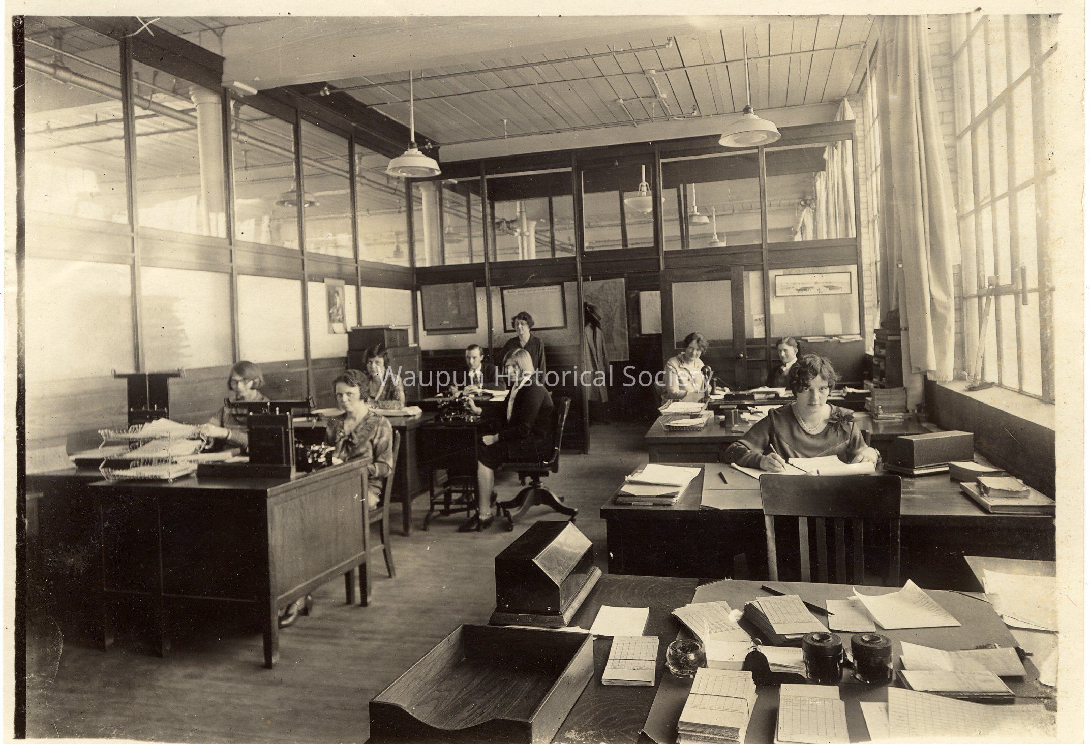 Shaler, Original photograph of the "modern" C. A. Shaler Co. office, before the fire in 1922. Identities of individuals unknown.