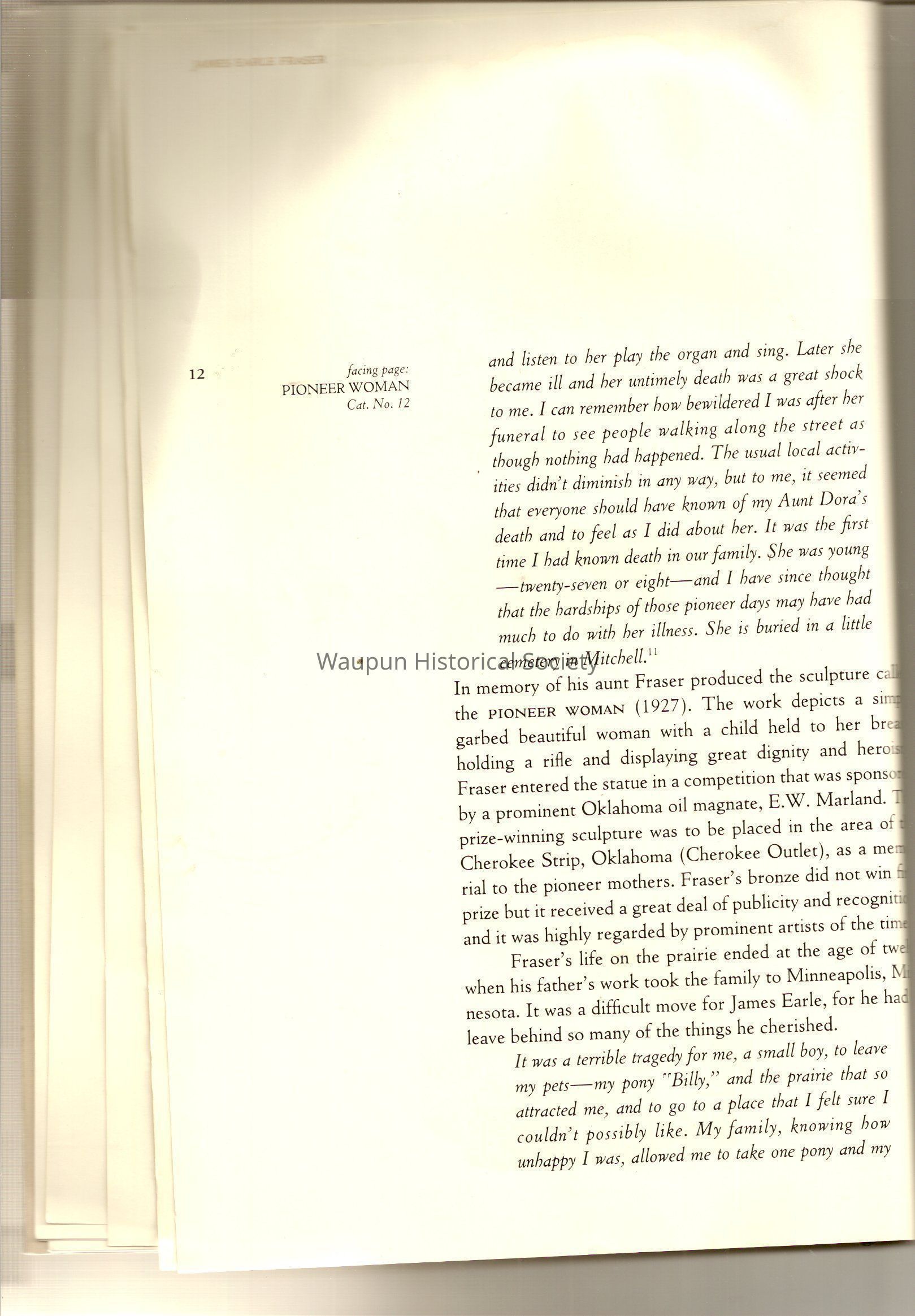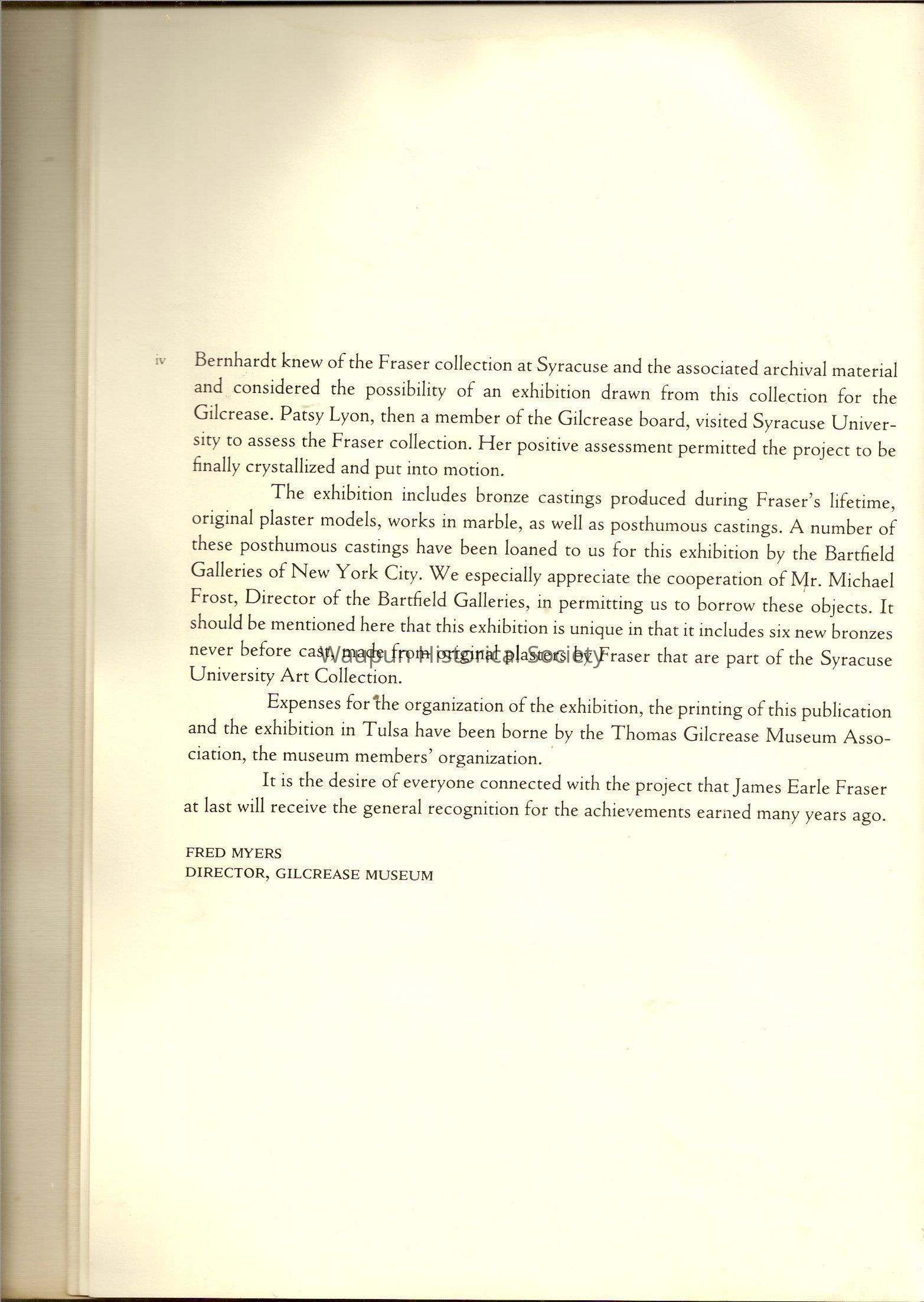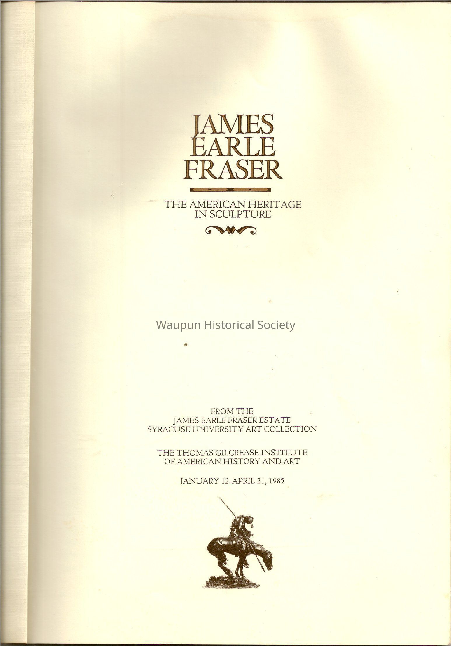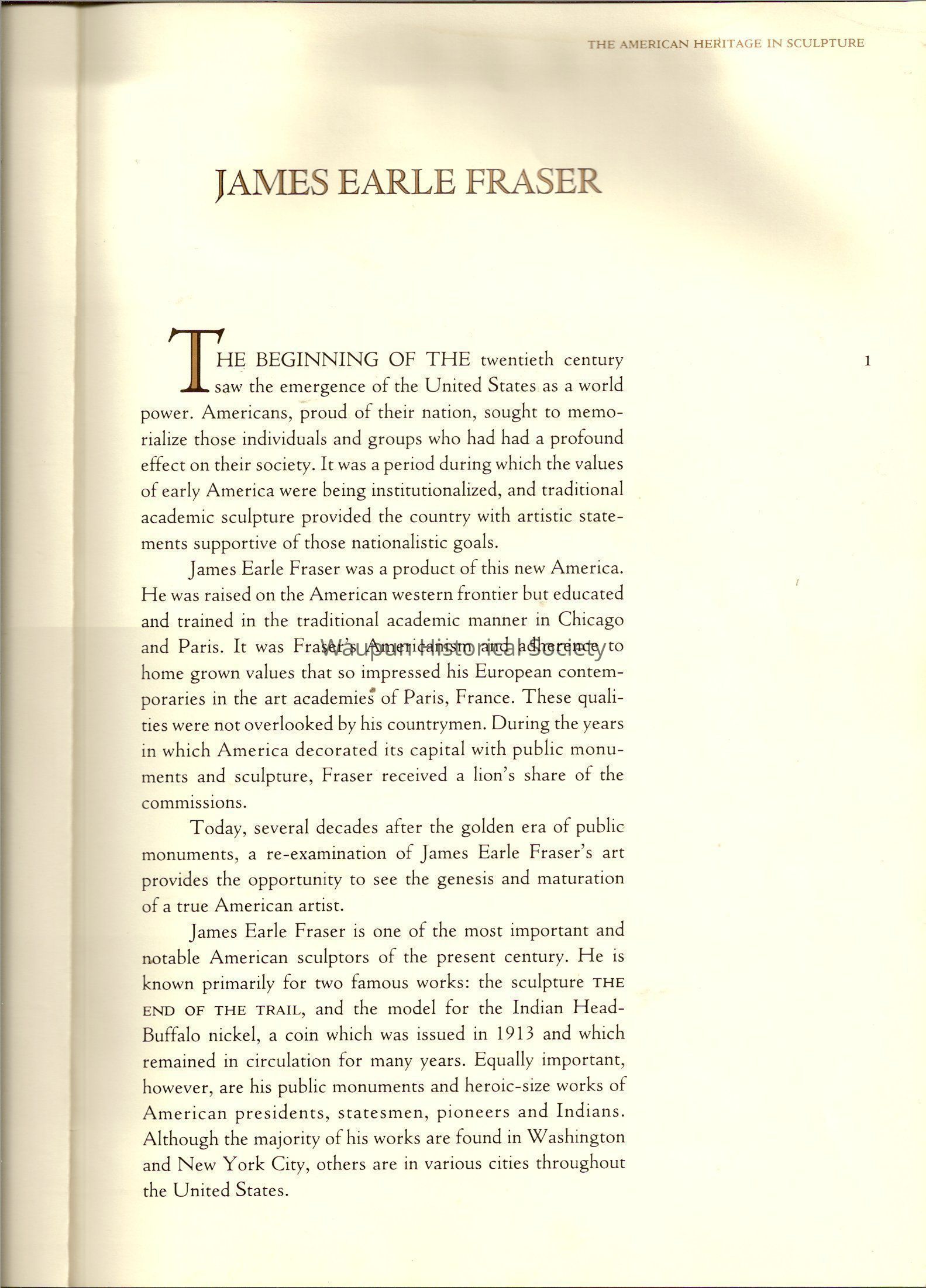 A Book of James, Earle Fraser is a American sculptor whose name was seldom associated with the many outstandinding public monuments and other work which are seen every day by millions of people in Washington D.C., New York and other city thought out the united states.Acquisition