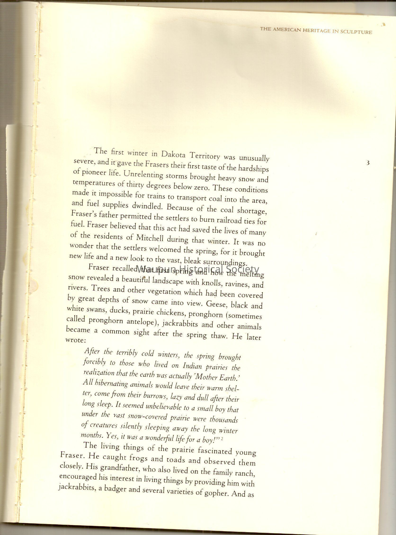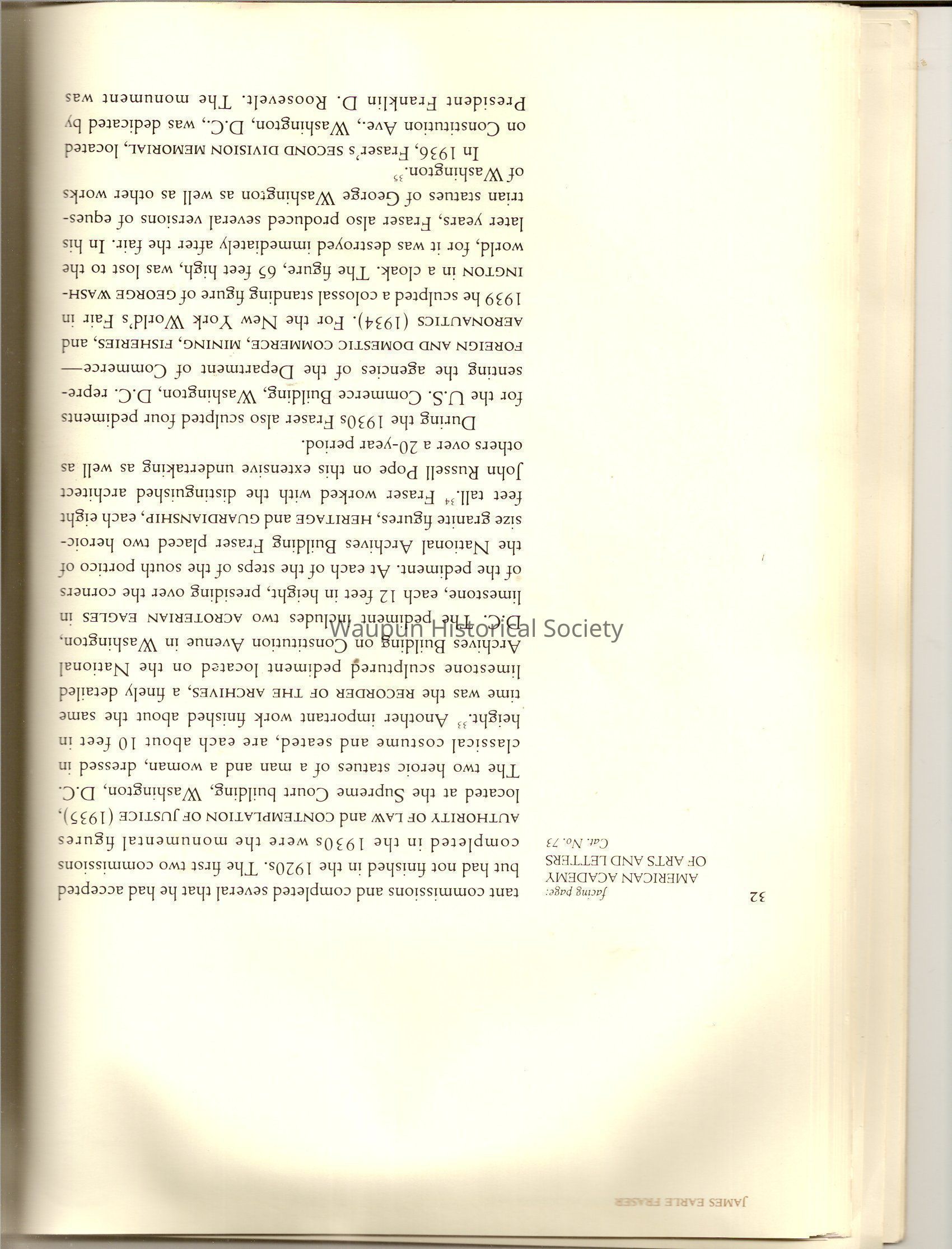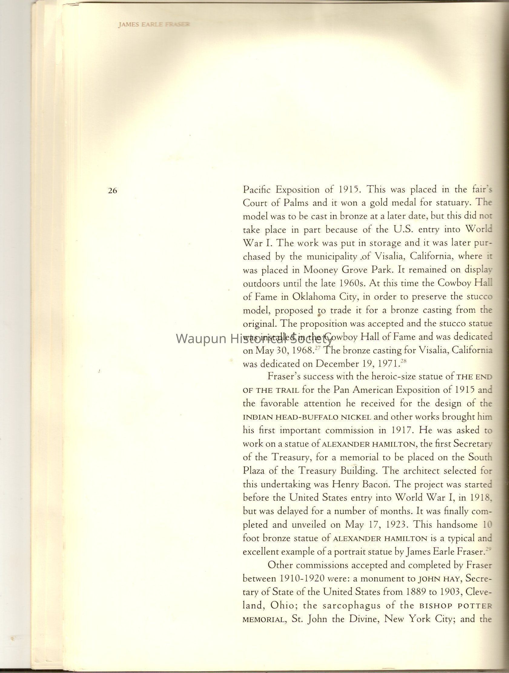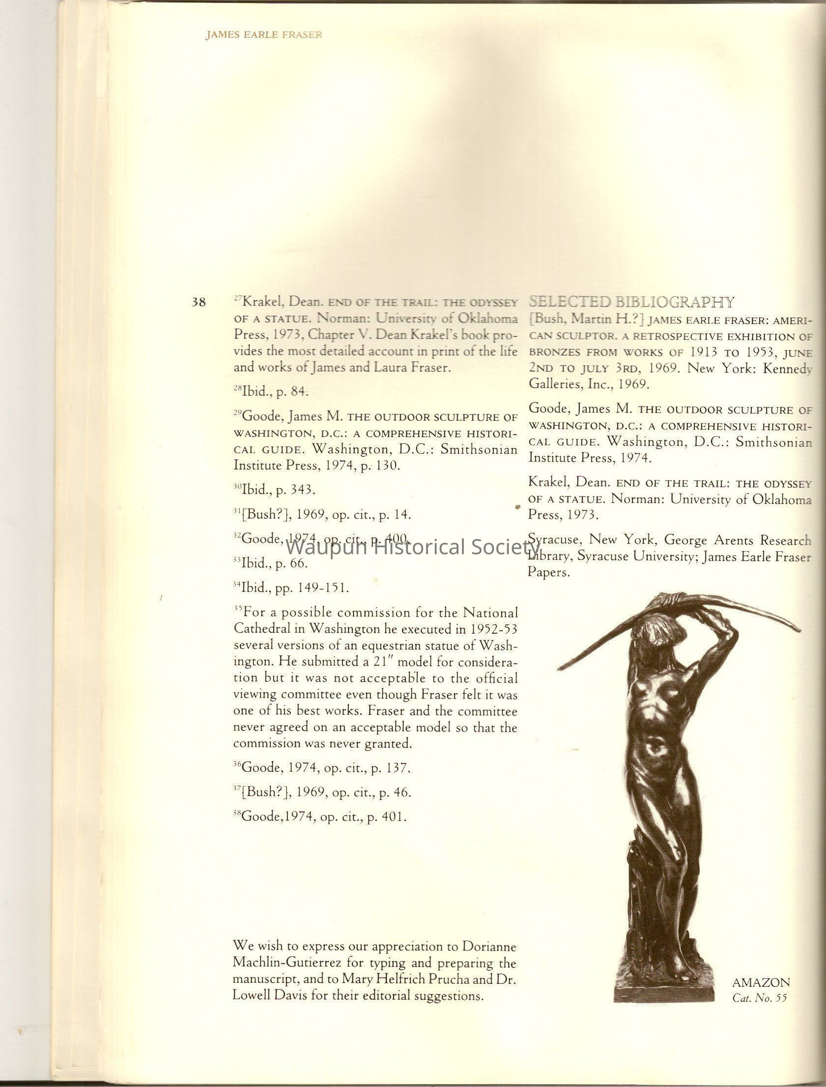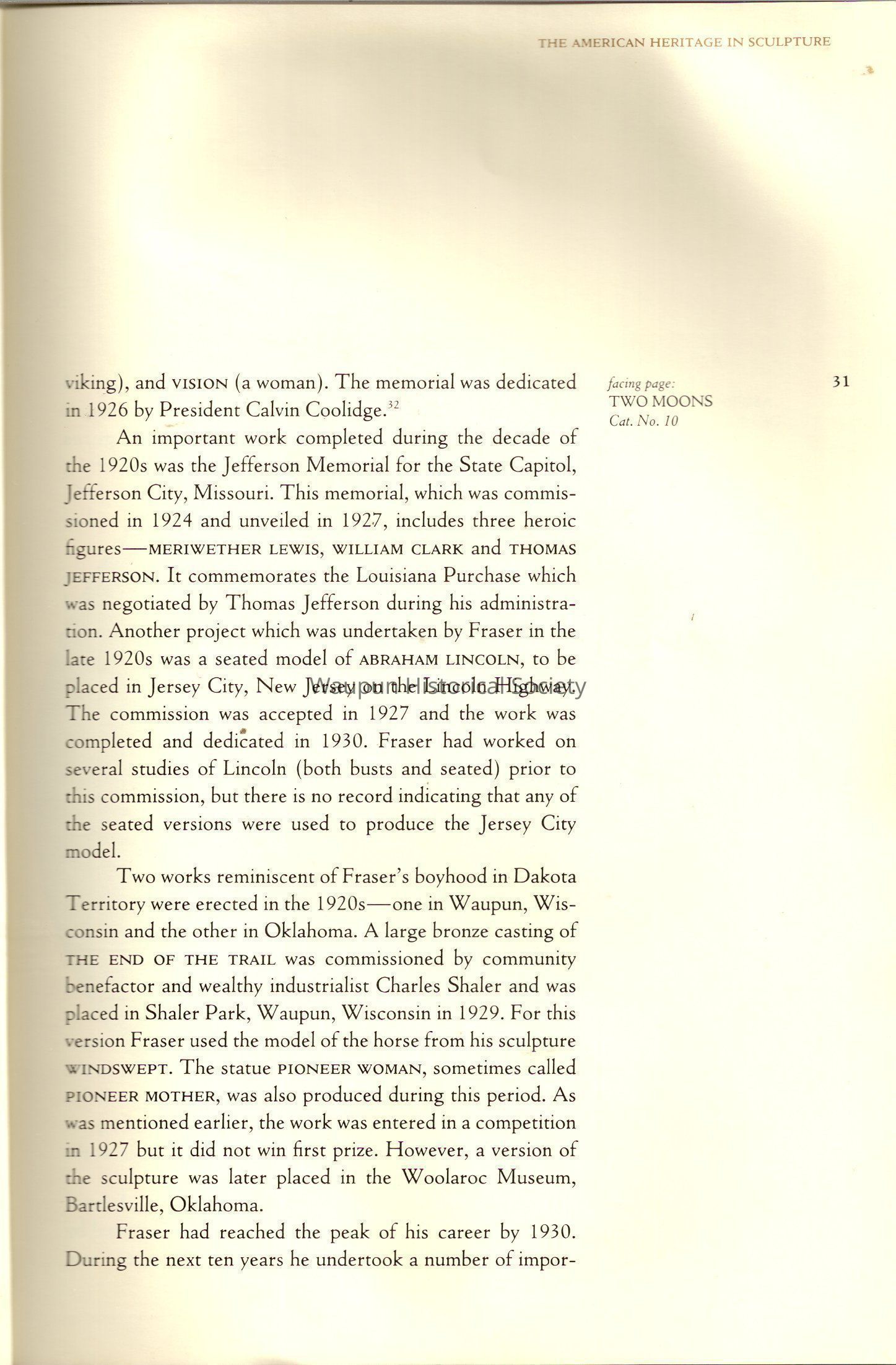 A Book of James, Earle Fraser is a American sculptor whose name was seldom associated with the many outstandinding public monuments and other work which are seen every day by millions of people in Washington D.C., New York and other city thought out the united states.Acquisition