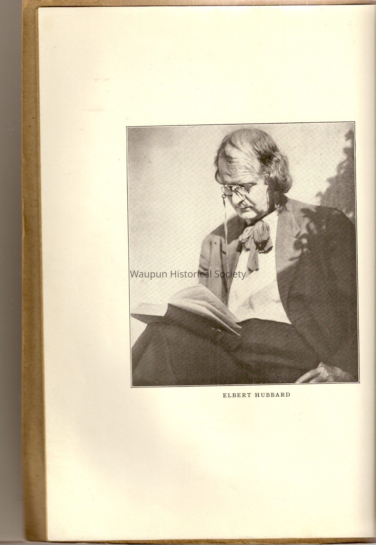 The first printed page is a picture of Elbert Hubbard reading a book. The Title page gives an account of content, who and where it was printed.