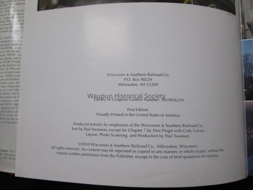 Book about Wisconsin & Southern Railroad Co. The dust jacket(paper cover) has several tears. The hard cover copy itself is in good condition.Acquisition