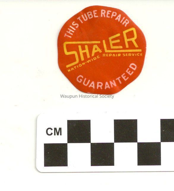 Shaler, seal. This is an adhesive seal apparently used by the Shaler corporation as a seal. It says:"This Tube Repair, Shaler, Nation-Wide Repair Service, Guaranteed."Acquisition
