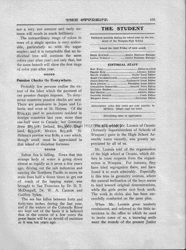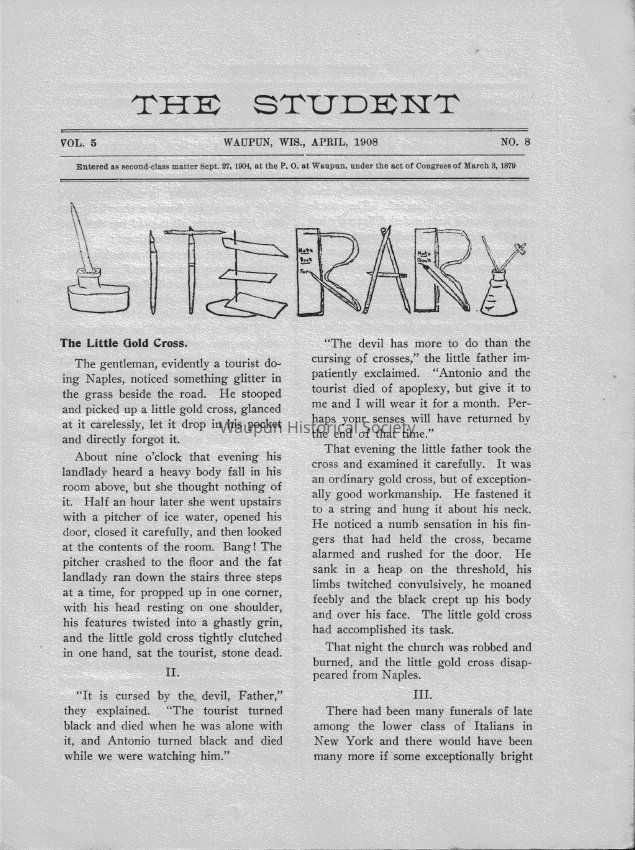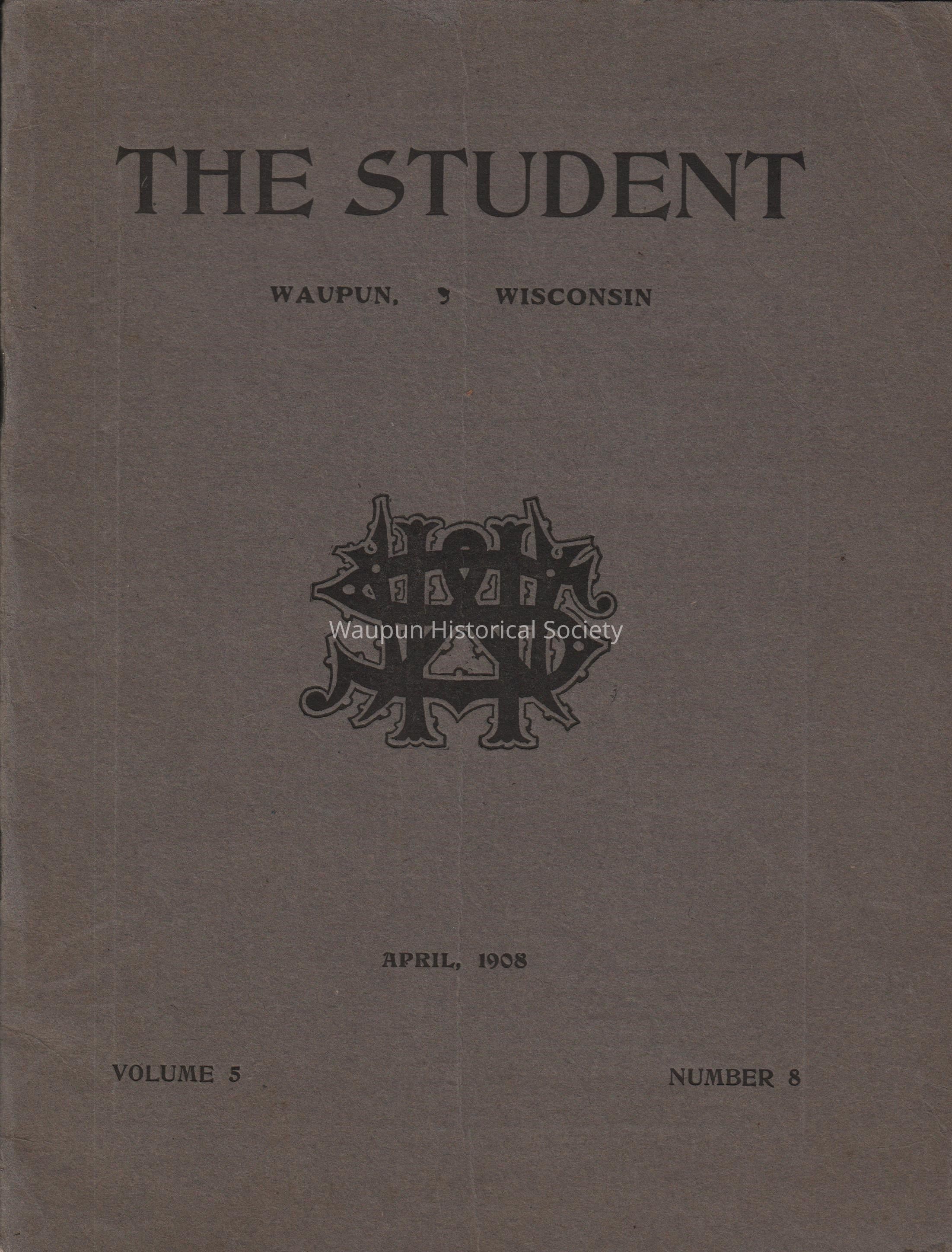 monthly publication by the students of Waupun high school in April 1908. gray cover with black print, white pages with black printAcquisition