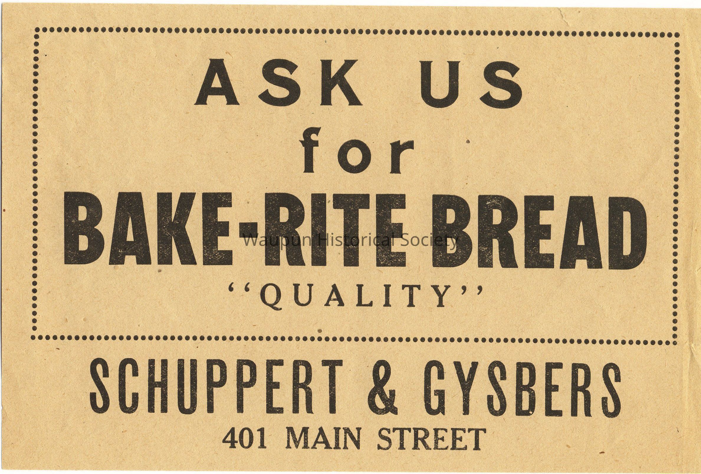 Ad, Schuppert & Gysbers, Bake-Rite Bread, 401 Main StreetEntry/Object ID