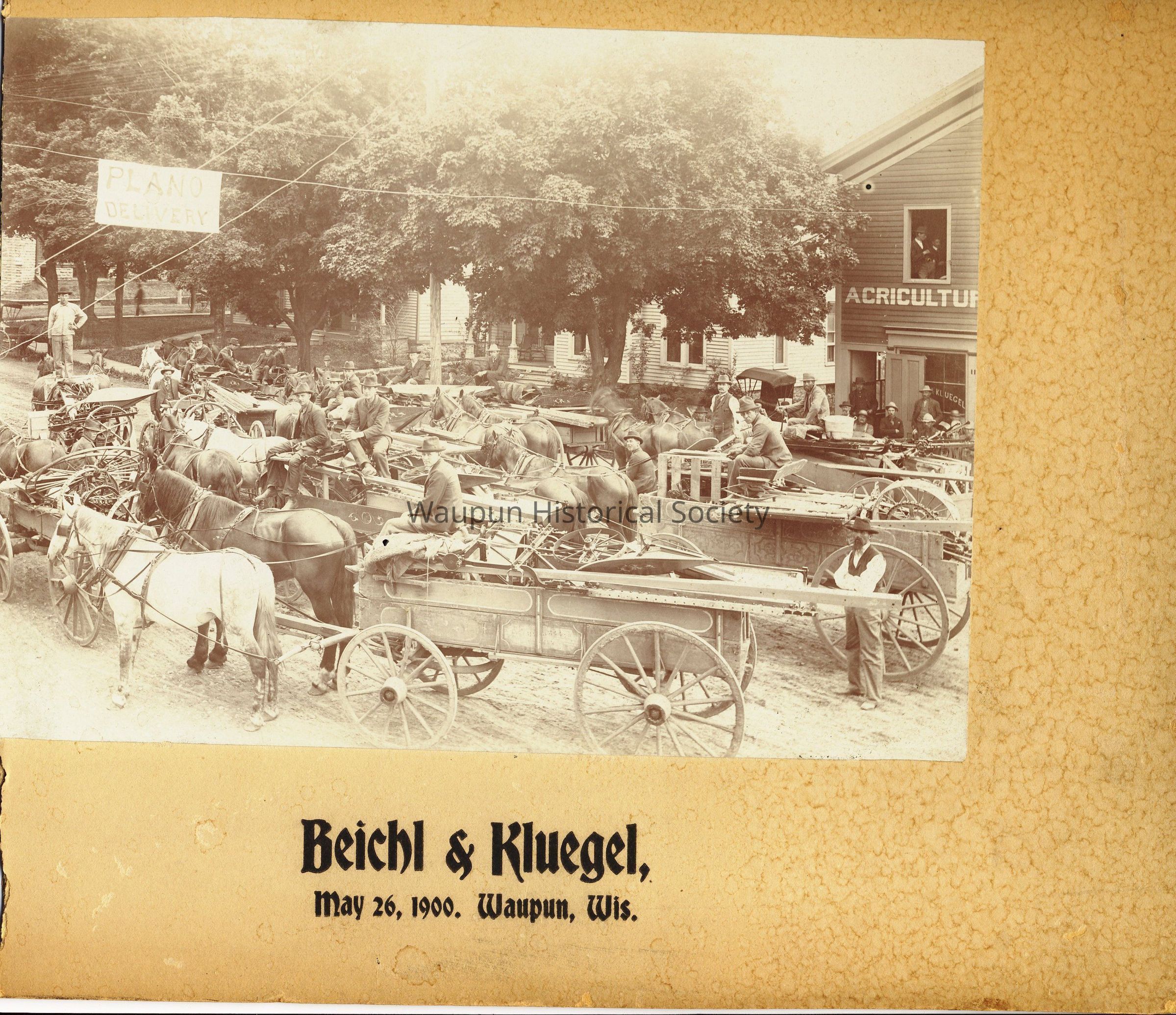 Modes of Transportation. Portion of advertisement for Beichl & Kluegel Agricultural Warehouse May 26, 1900 Waupun, WI