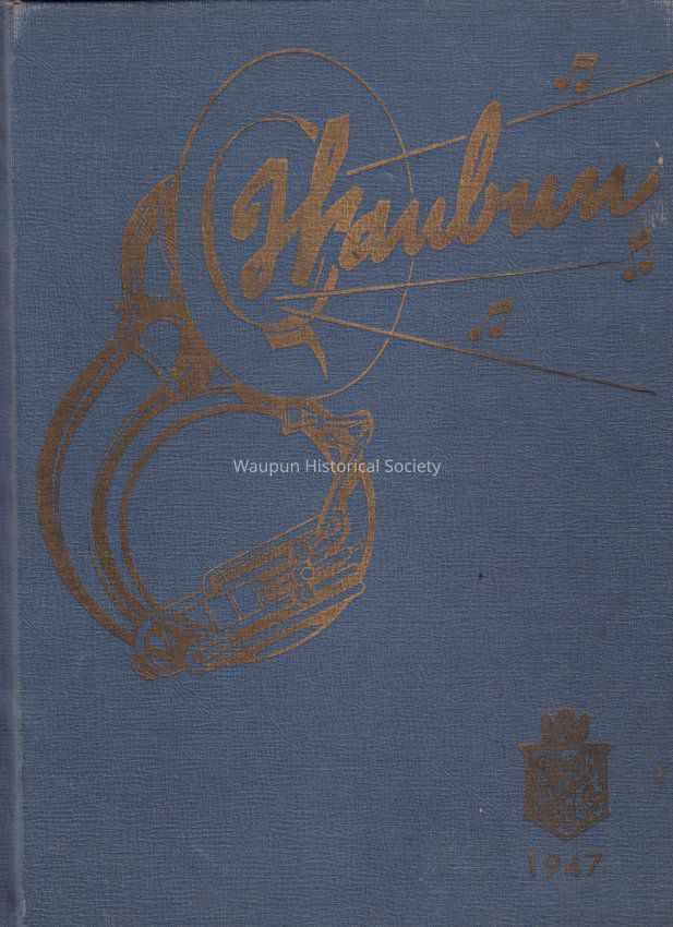 Waubun1947 yearbook/green cover -gold print on front/white pages /black print inside/58 pages