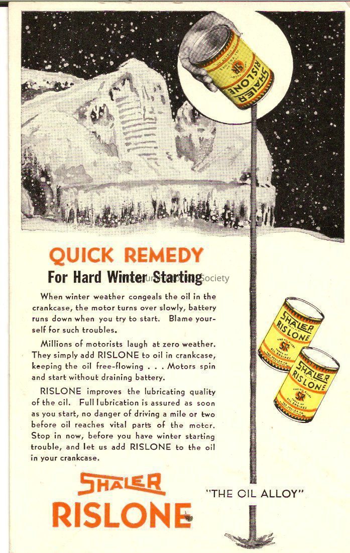 Shaler, A Post Card of a Quick Remedy For hard Winter Start When winter weather congeal the oil in the crank case the motor turn over slow battery runs down when try to start.Acquisition