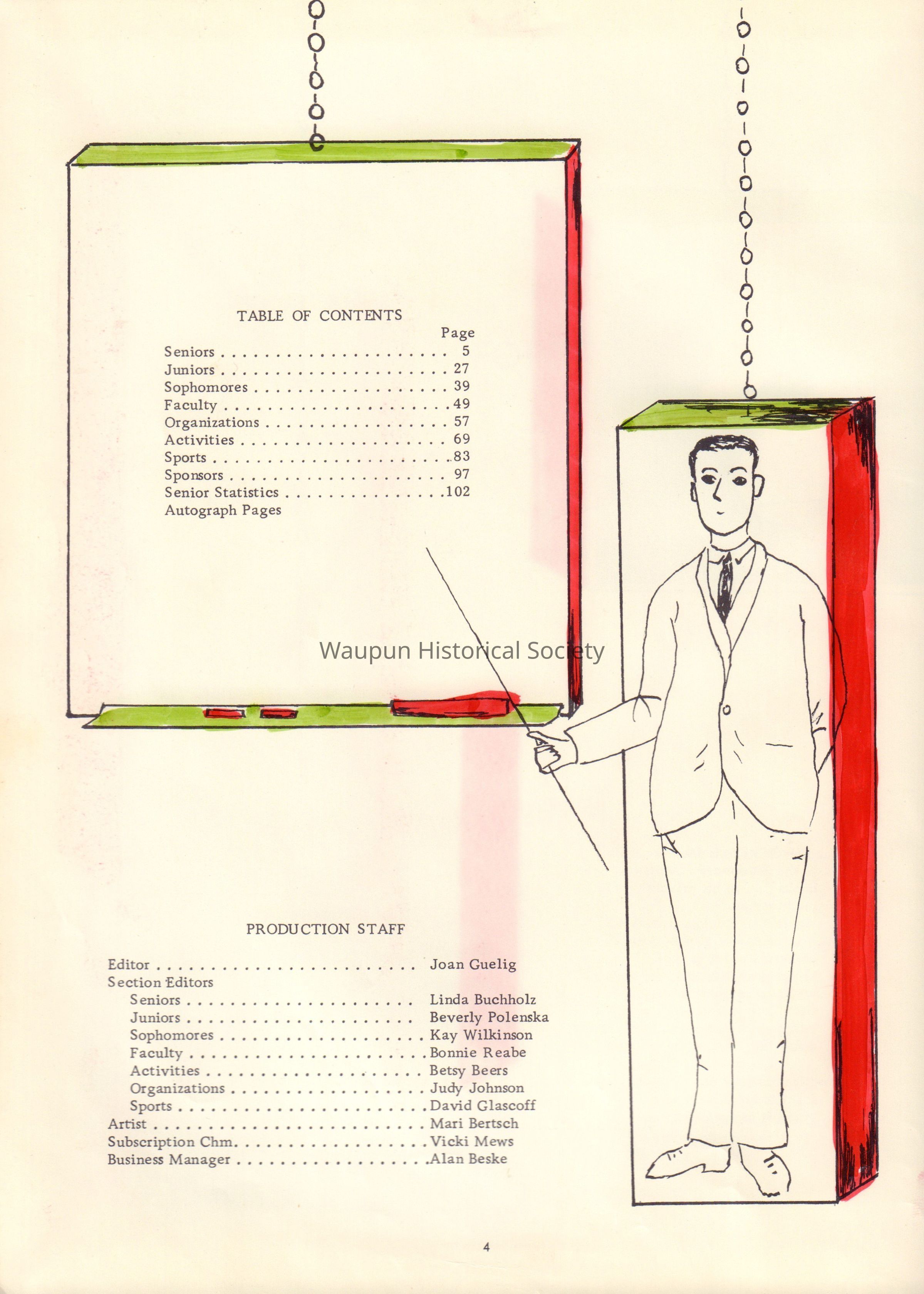 Waubun 1965 yearbook /green&black cover /white pages /black printing inside /96 plus pages