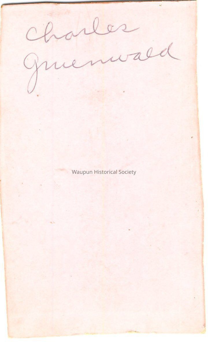 Cabinet Card, Johnson, Small, Photo of Charles Gruenwald as indicated in handwritting on back. This is from the collection of photos donated by William and Joyce Burmeister.Acquisition
