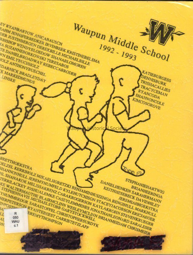 Waupun 192-1993 (Middle School yearbook) yellow/black print on cover /white pages black printing inside /56 pagesAcquisition