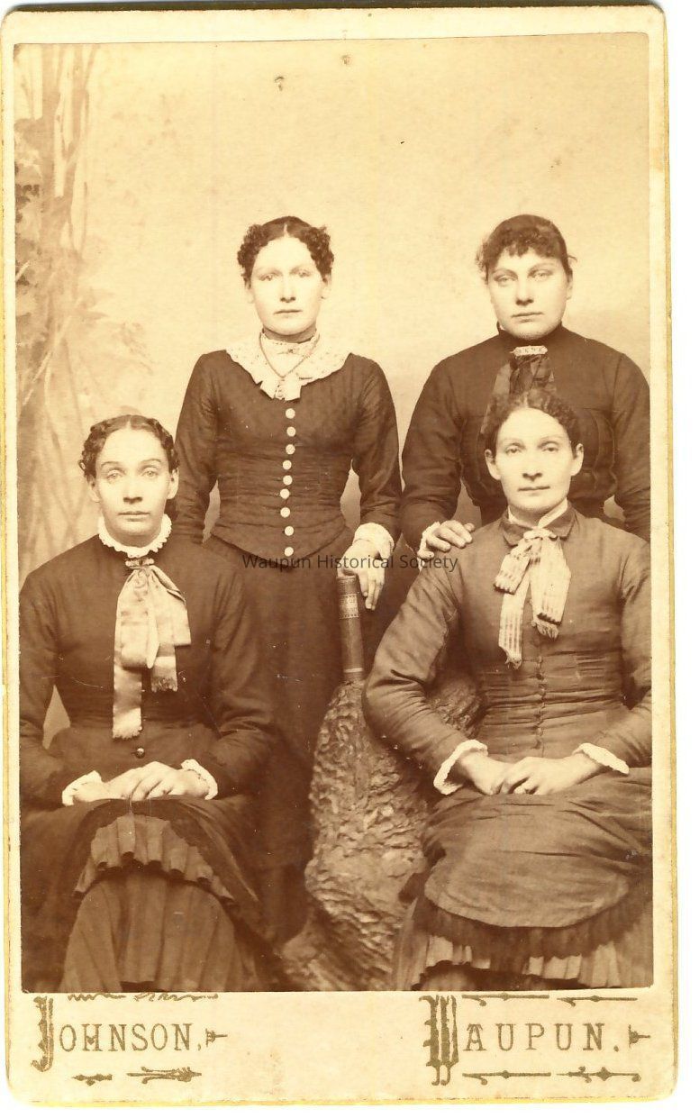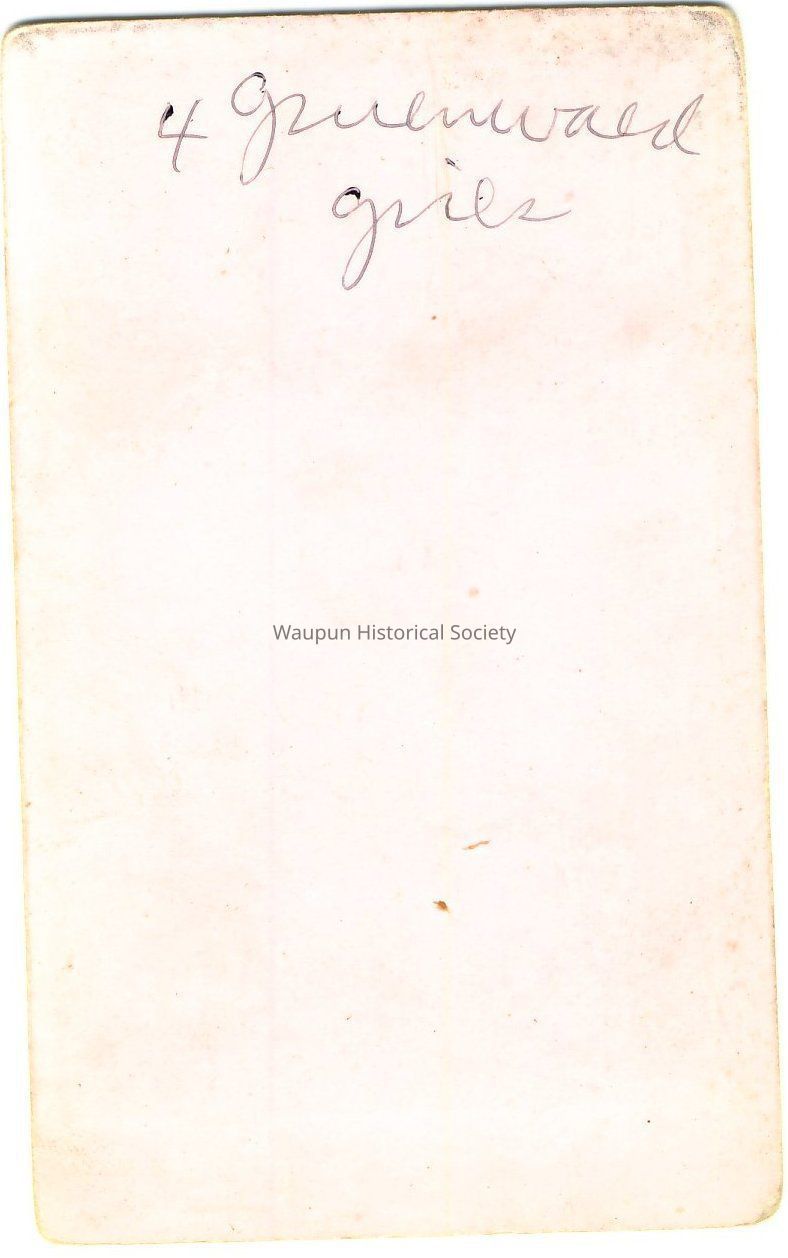 Cabinet Card, Johnson, Small, Photo of 4 Gruenwald girls as indicated on back of photo. This is from the photo collection from William and Joyce Burmeister.Acquisition