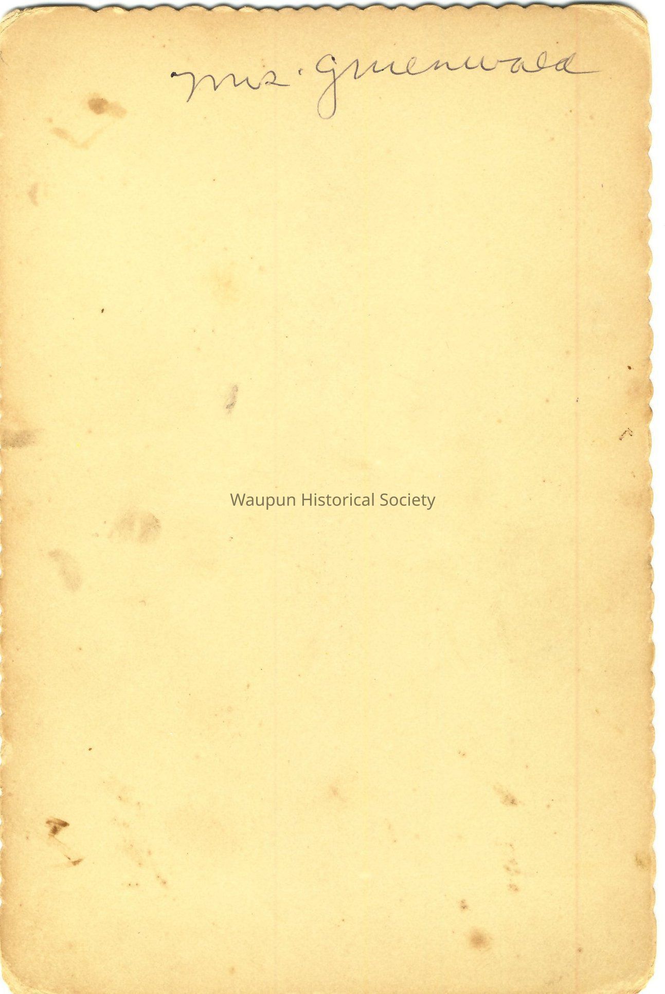 Cabinet Card, Johnson, Photo of Mrs. Gruenwald as indicated on back. This is from the photo collection donated by William and Joyce Burmeister.Acquisition