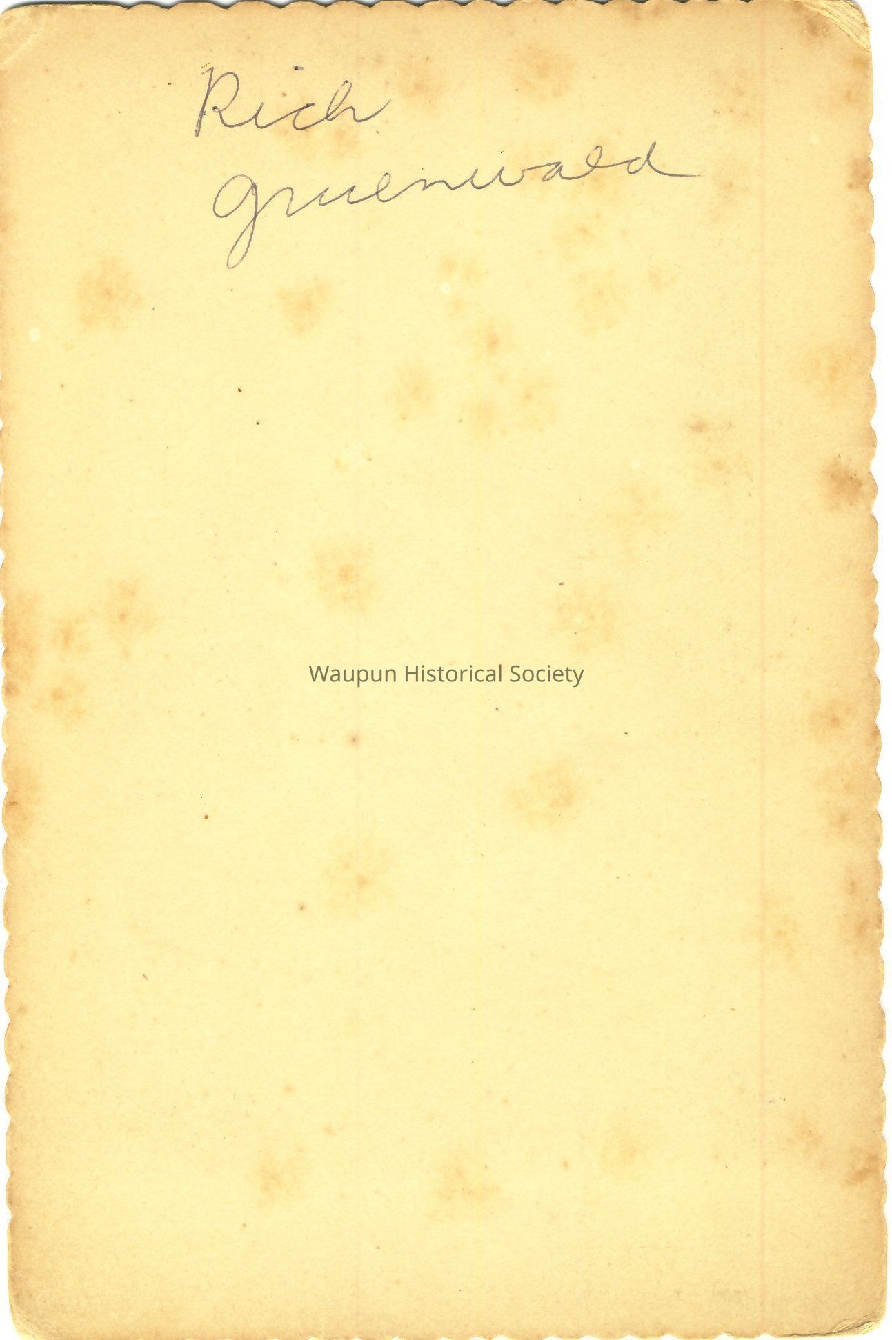 Cabinet Card, Johnson, Photo of Rich Gruenwald as indicated on back. This is from the photo collection donated by William and Joyce Burmeister.Acquisition