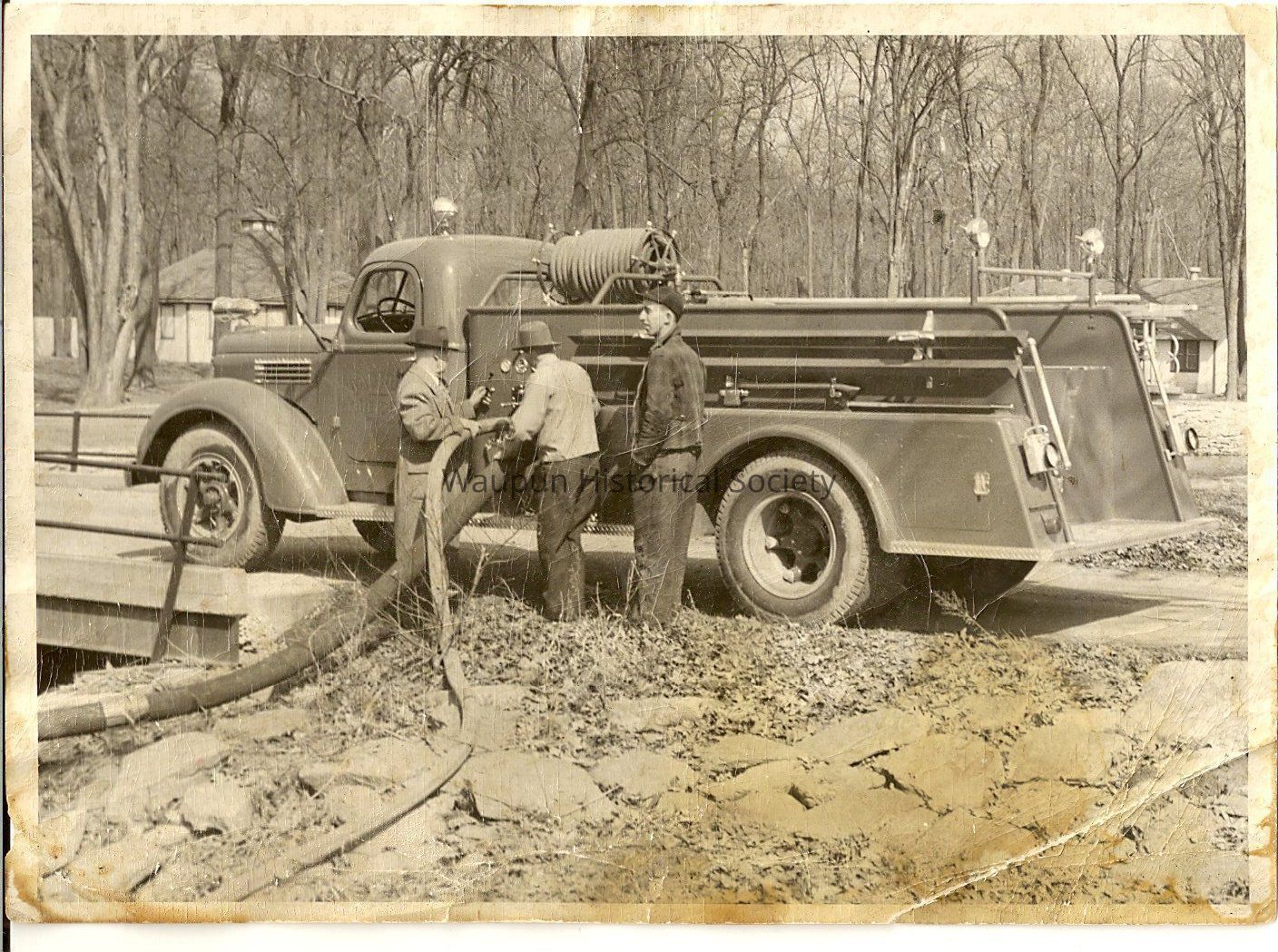 1- Picture of Waupun First Fire with three guys removing the hose off the truck from pumping water.Acquisition