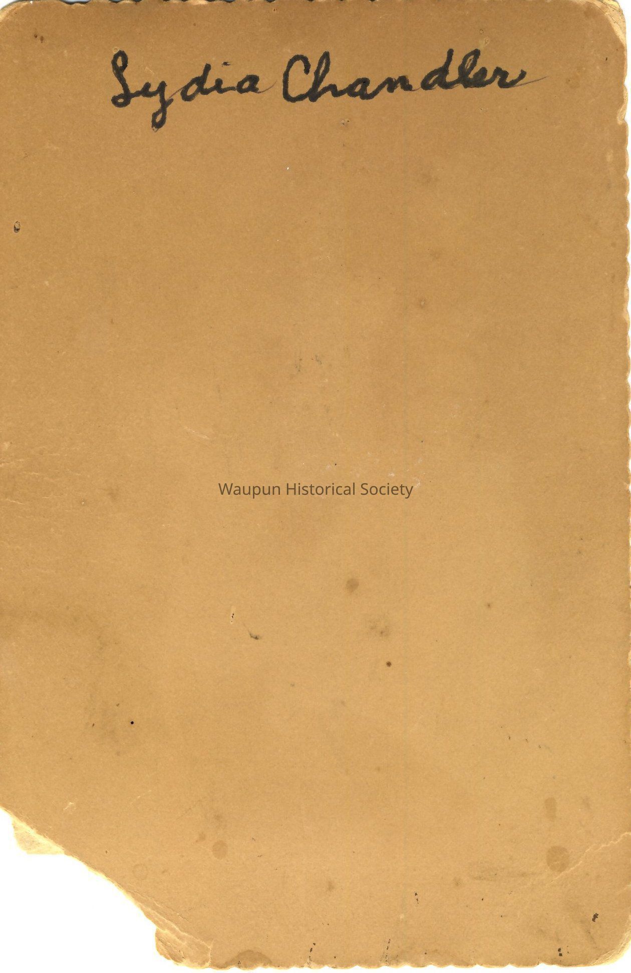 Cabinet Card, Johnson, Photo of Lydia Chandler as indicated in writting on back of photo. This is from the collection of photos donated by William and Joyce Burmeister.Acquisition