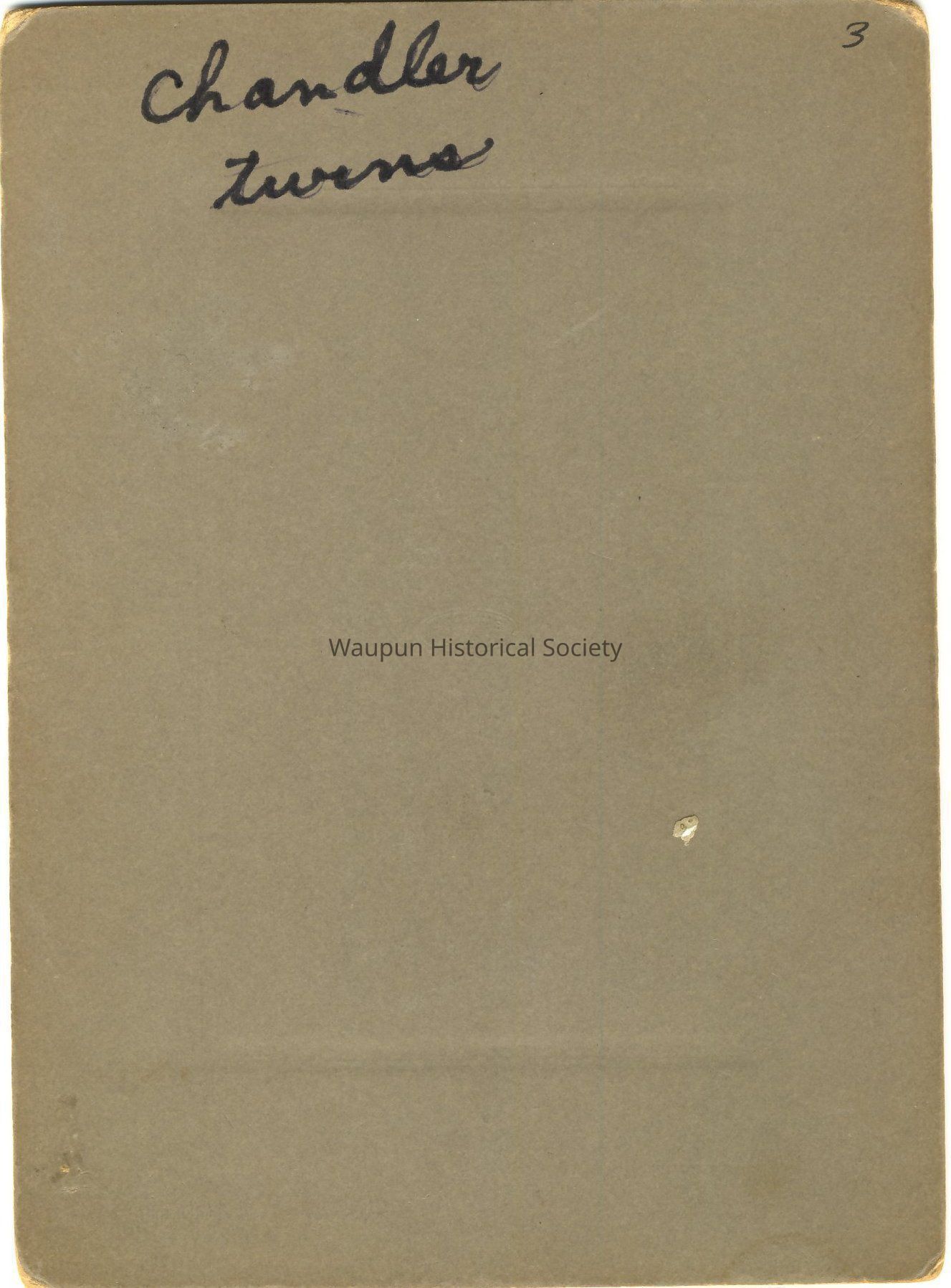Portrait, Chandler twins as indicated in writting on back of photo donated by William and Joyce Burmeister.Acquisition
