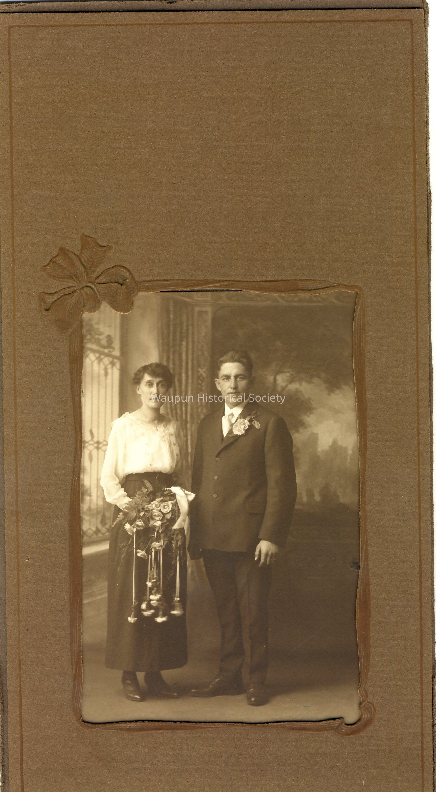 Portrait, indicates on back that this is Ed and Lovila. Appears that this is possibly their wedding.