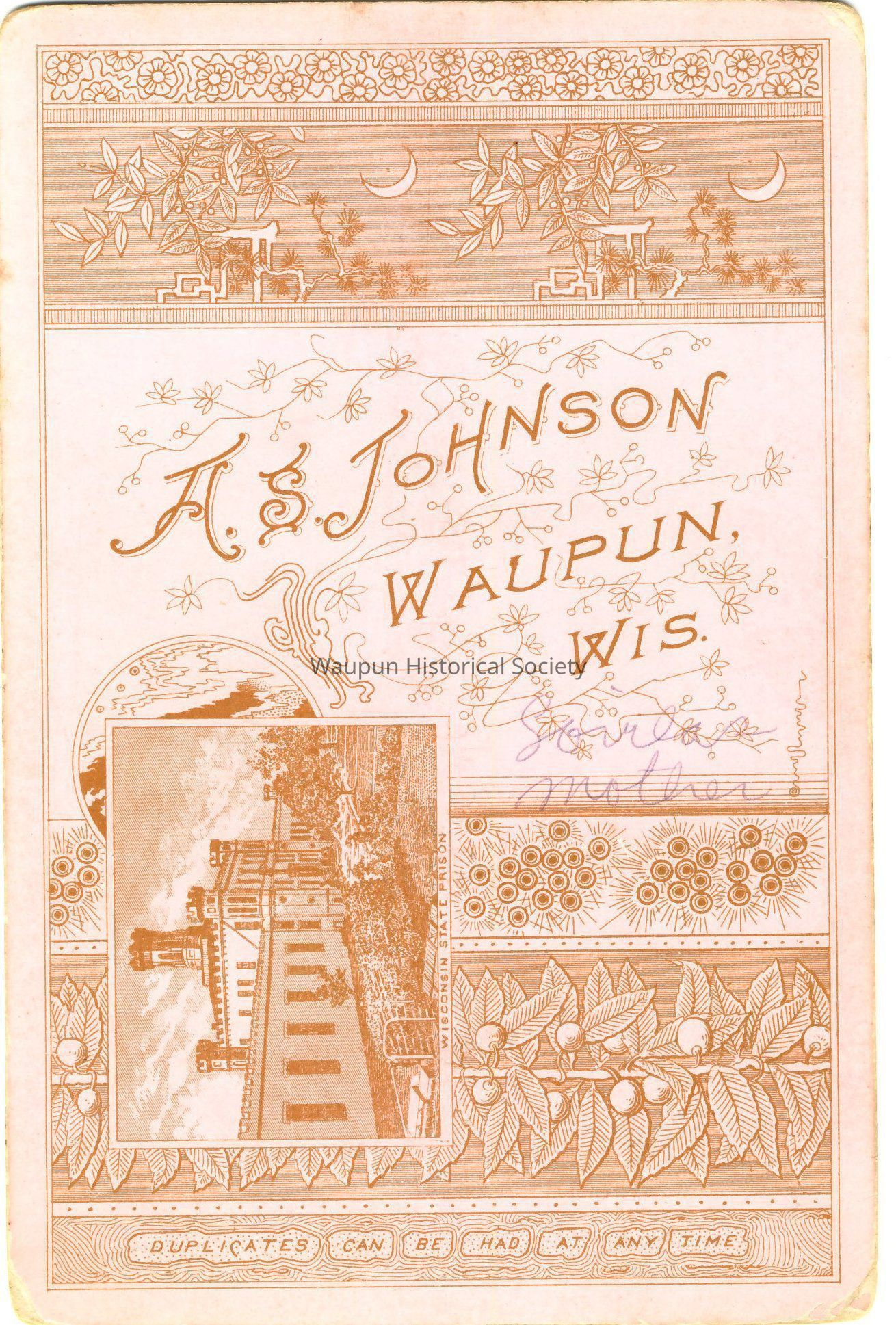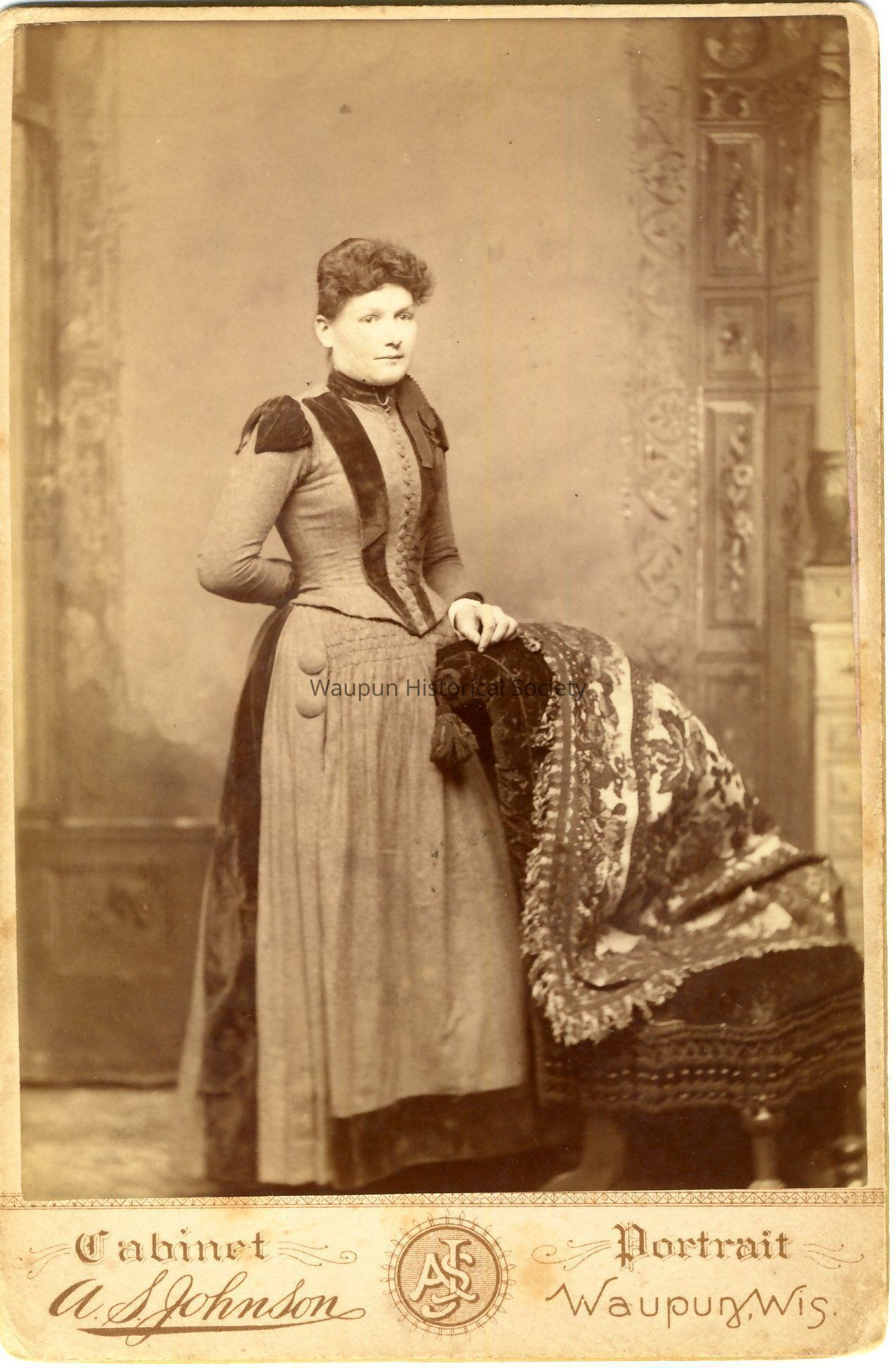 Cabinet Card, Johnson, Photo of Lovila's mother as indicated on the back of photo. This is from the collection donated by William and Joyce Burmeister.Acquisition