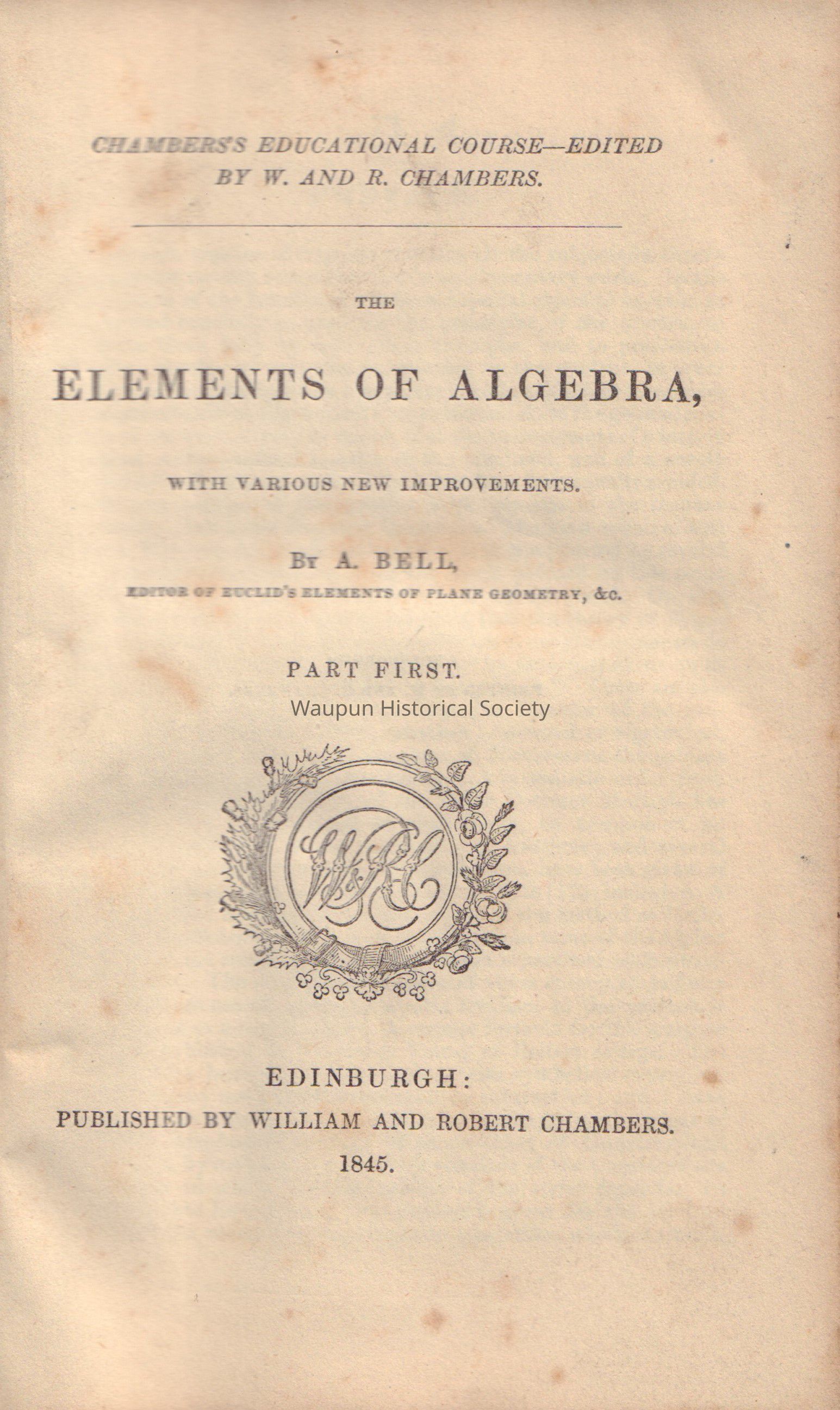 Book, Chambers's Educational Course, Algebra-Part I, The Hillyer Library, No. 6932Entry/Object ID