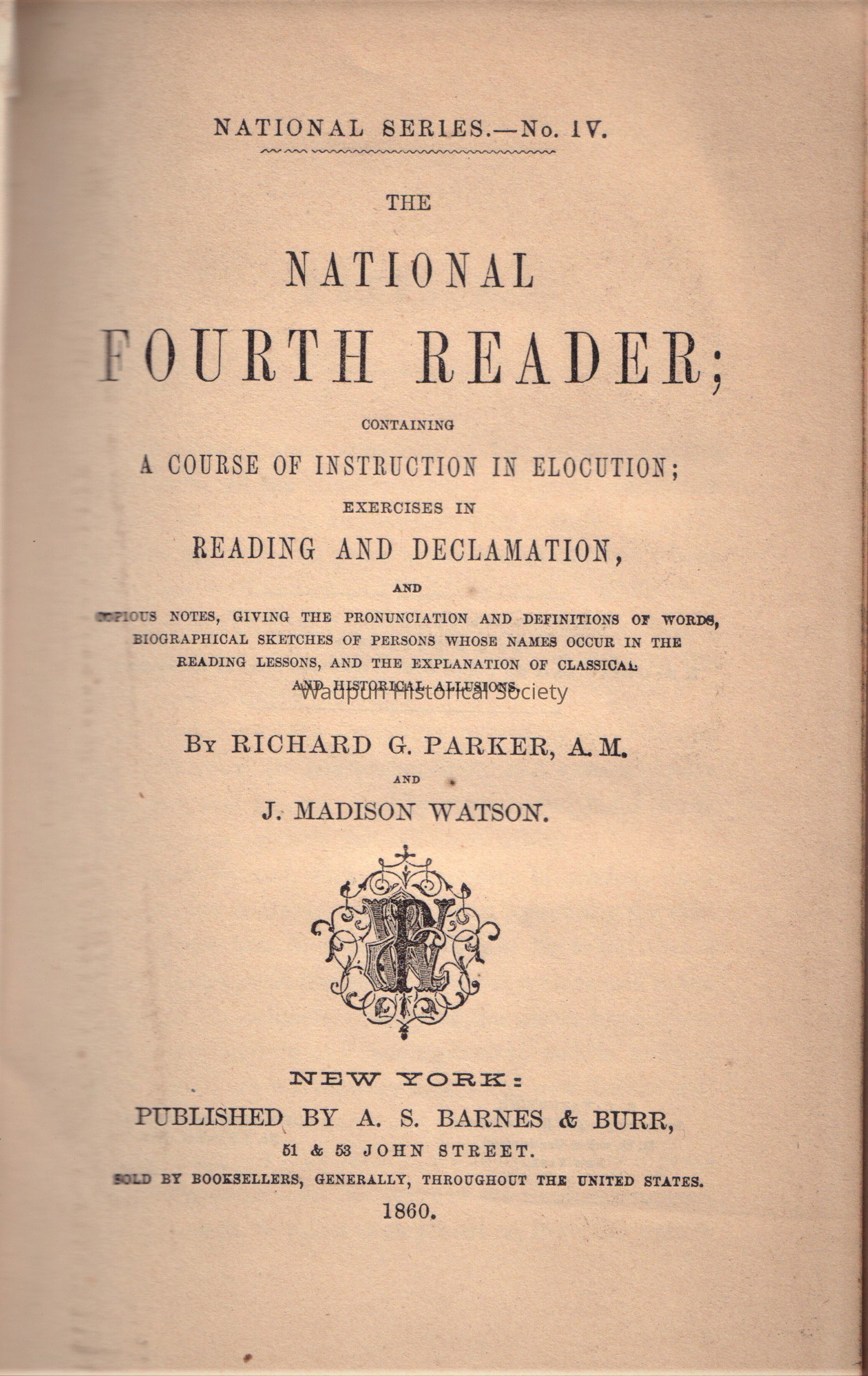 (1860) BOOK /BROWN HARD COVER /NATIONAL SCHOOL SERIES on FRONT /white pages /black printing inside/ 408 pagesAcquisition