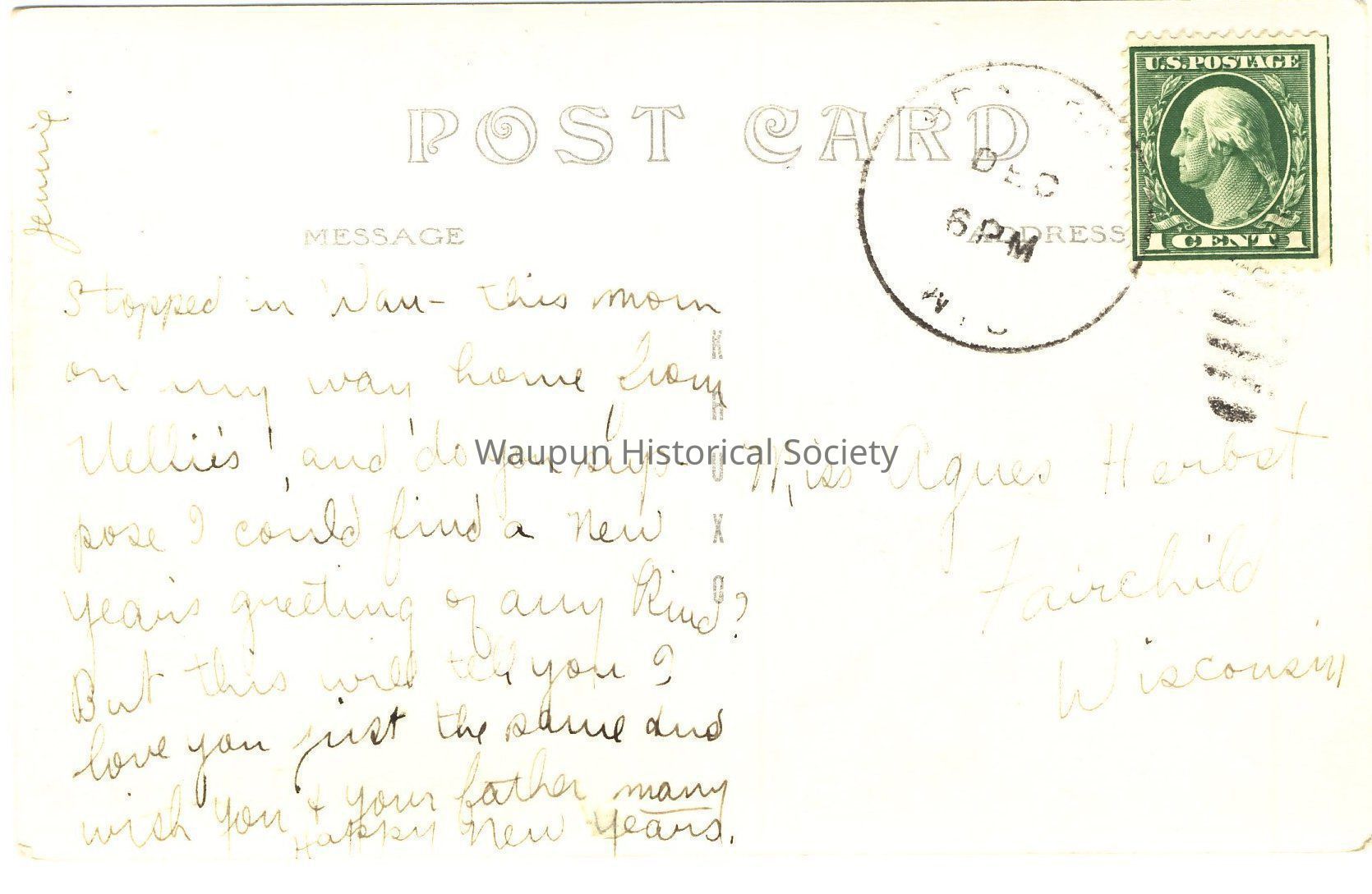 Addressed to Miss Agnes Herbst, Fairchild, Wisconsin from Jennie.Acquisition