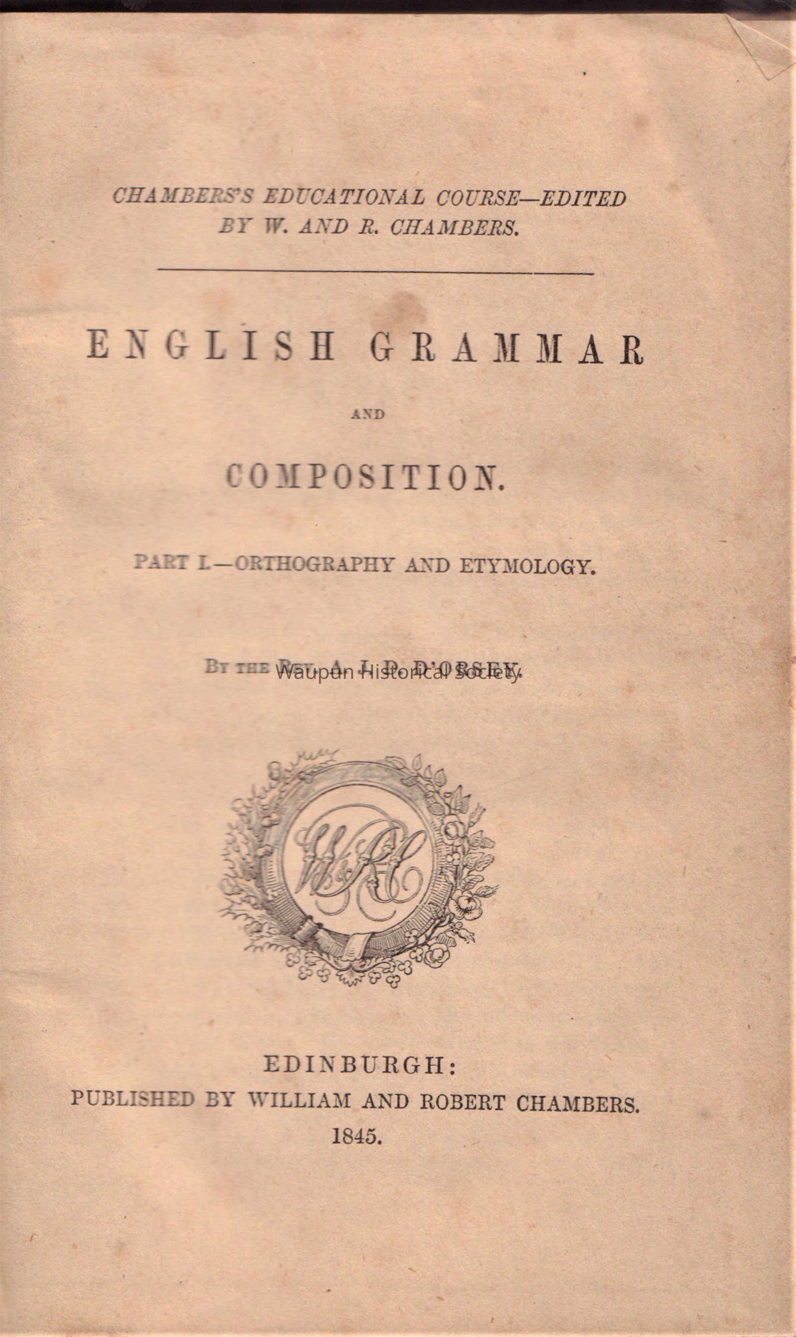 (1845) BOOK / ENGLISH GRAMMAR /BROWN HARD BACK /CHAMBERS"S EDUCATIONAL COURSE GRAMME-PART 1 ON FRONT COVER /white pages /black printing inside /153 pagesAcquisition