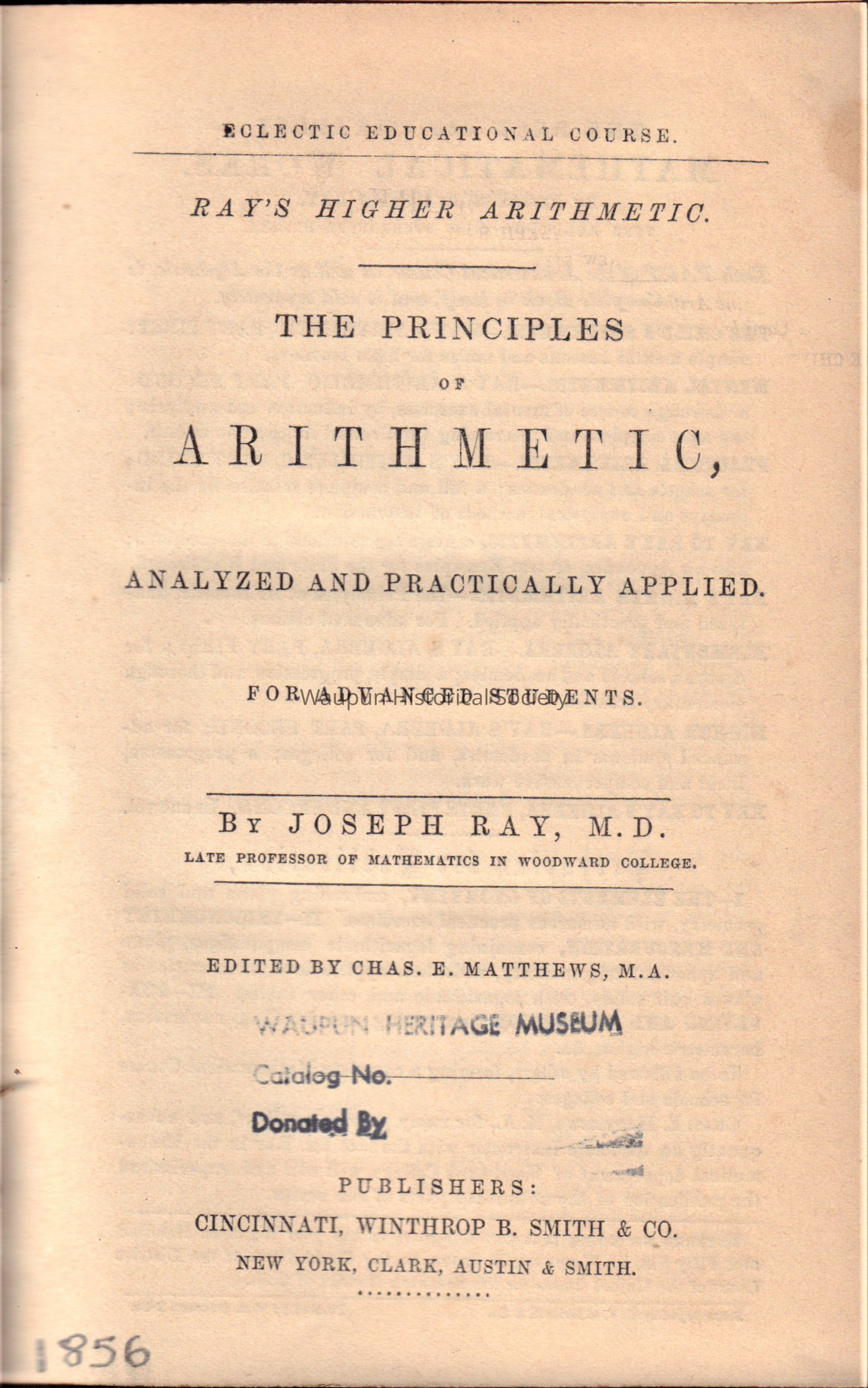 (1856) BOOK THE PRINCIPLES OF ARITHMETIC /BROWN HARD BACK /white pages /black printing inside /448 pagesAcquisition