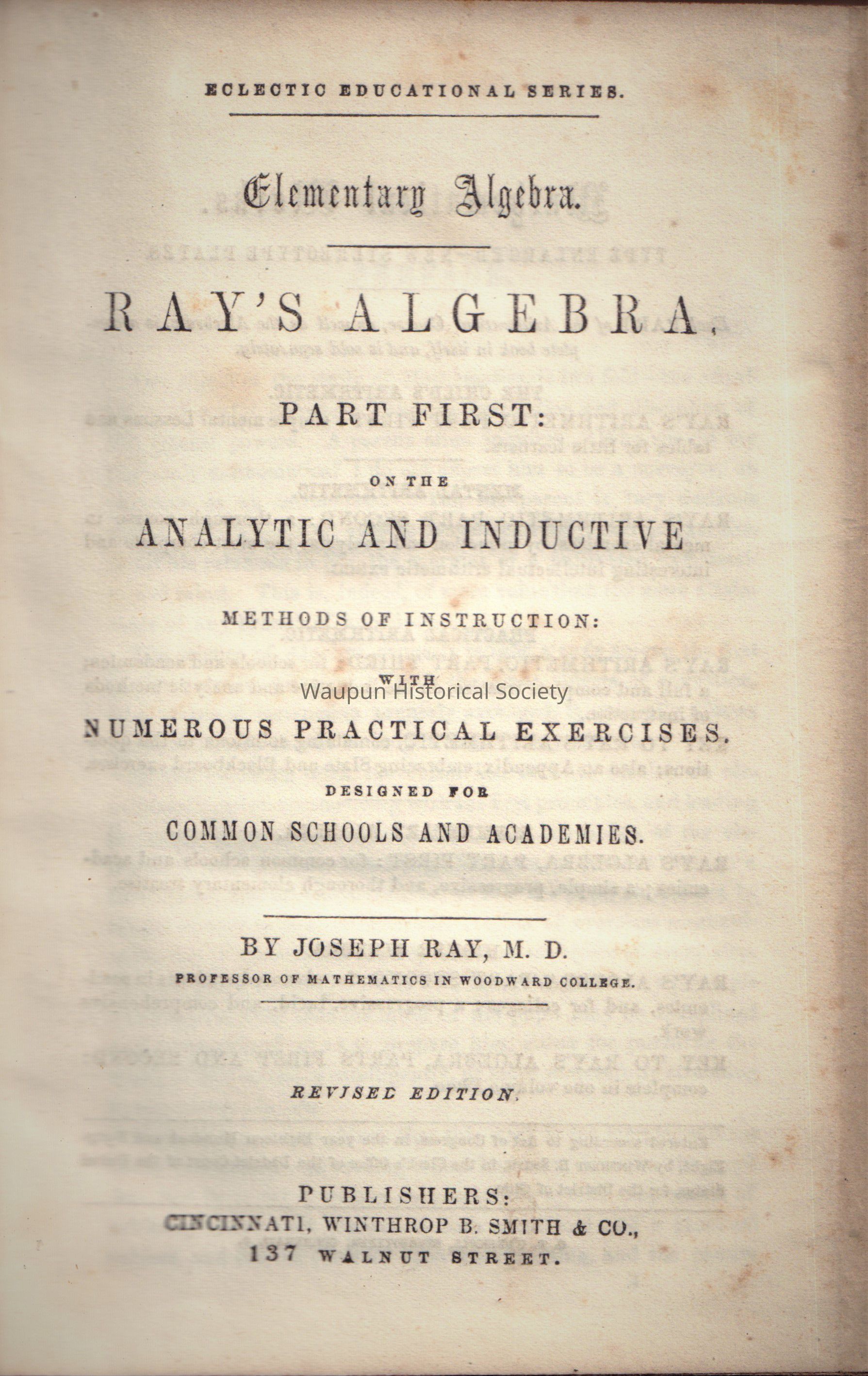(1848) BOOK RAY'S ALGEBRA PART FIRST /BROWN HARD BACK COVER/ WHITE PAGES /BLACK PRINTING INSIDE /240 PAGESAcquisition