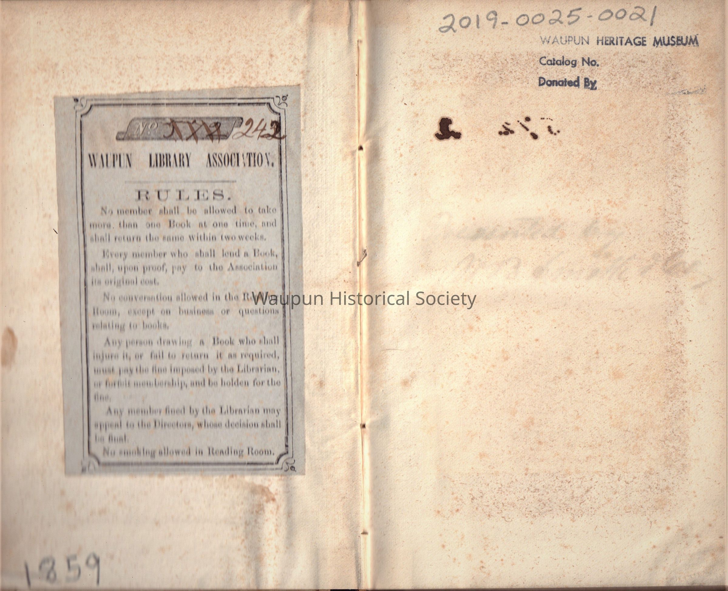 (1859) BOOK /BROWN HARD BACK / BLACK PRINTING ON COVER /WHITE PAGES /BLACK PRINTING INSIDE /214 PAGESAcquisition