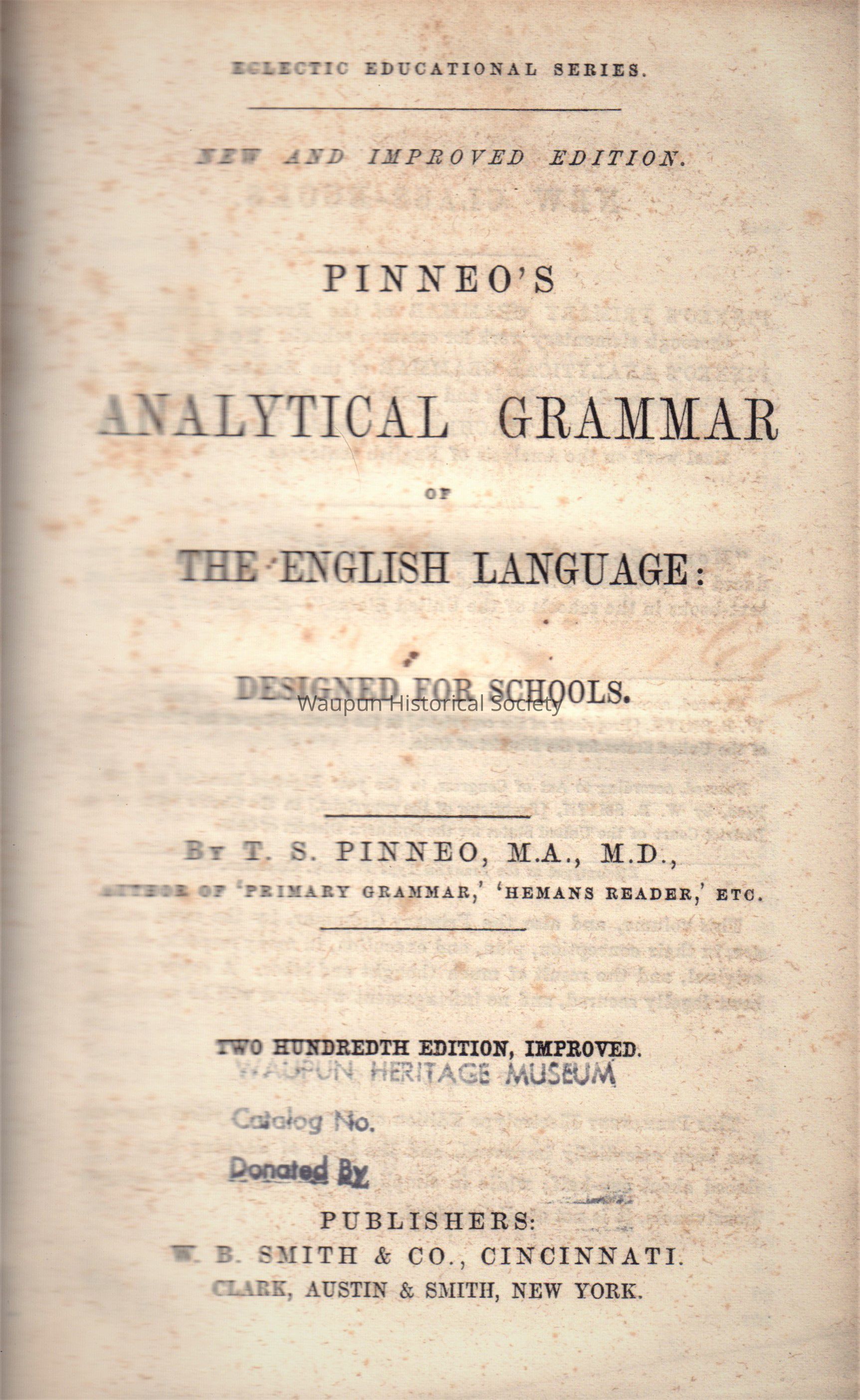PINNEO'S NEW ANALYTICAL OF THE ENGLISH LANGUAGEEntry/Object ID