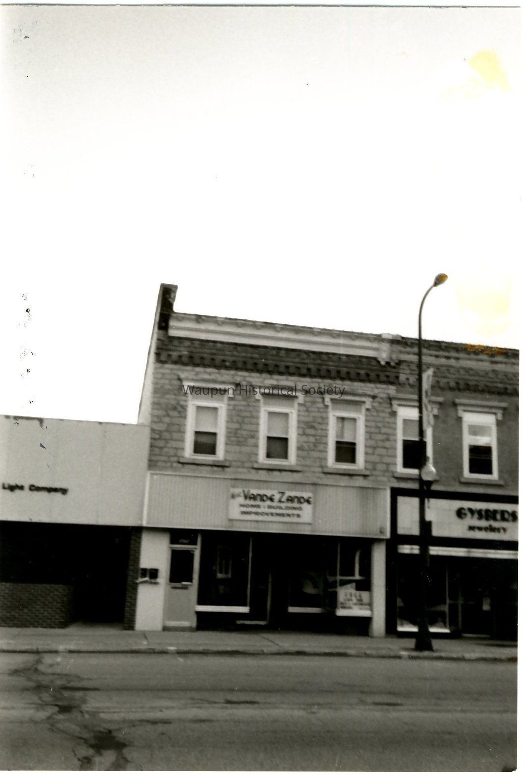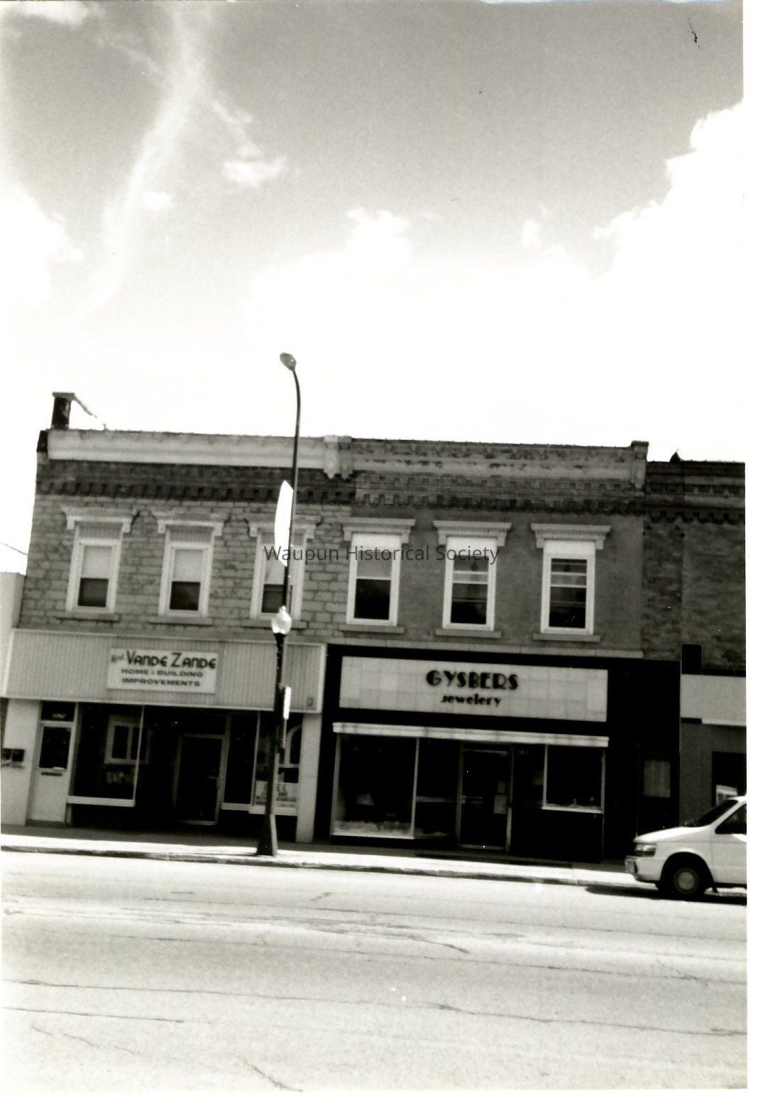Photograph, Main Street, 301-307 East Main, Senior Center, Gysbers, Vande Zande. 3 - 1993 photos of Commercial buildings in the block of 301-307 E. Main, Waupun, WI. The businesses appearing in the photo are, Gysbers(jewelry), VandeZande's and the Waupun Senior Center. These photos are also in the Wisconsin History pictorial files.Acquisition