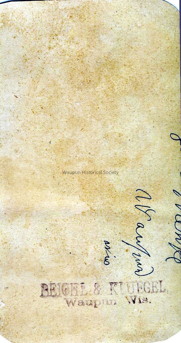 Beichl & Kluegel. This small picture card was an advertisement for the Household Sewing Maching Co. of Providence, RI. However on the back it is stamped with the Beichl & Kluegel company stamp. On the back is also written by hand a name which may be Ida Menke, of Waupun, Wis.Acquisition