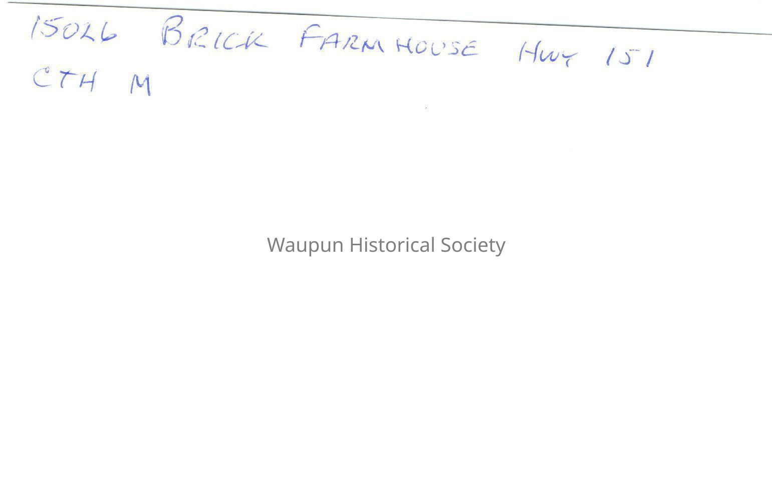 Photo of Brick farmhouse, Hwy 151 and CTH M, Waupun. In the WI Historical photo files, also.Acquisition