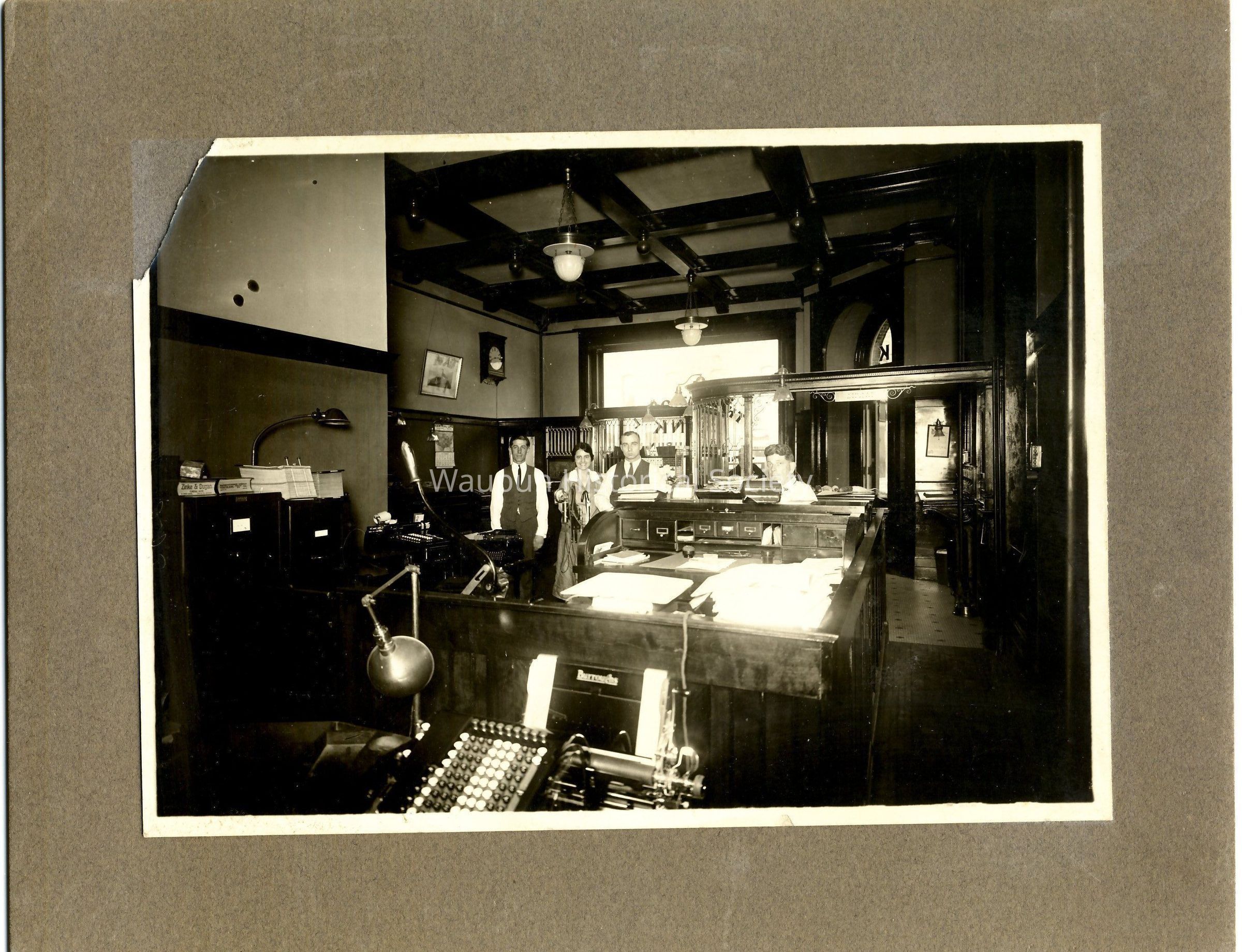 NOTE: This photo is part of a newspaper article 2005.0027.0004. The article is about the National Bank of Waupun and the lady shown is Miss Marguerite Keough. The photo is thought to have been taken about 1912.Acquisition