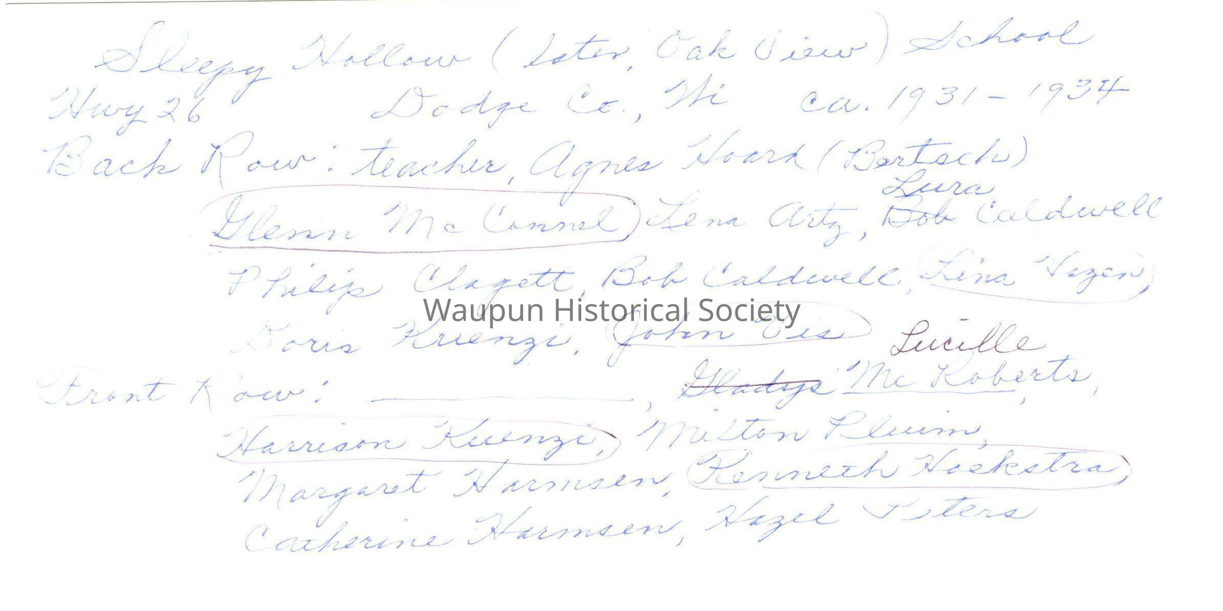 *NOTE: The list of students and teacher on the back of the photo are hand written, so not sure if all the names are typed (spelled) correctly.Acquisition