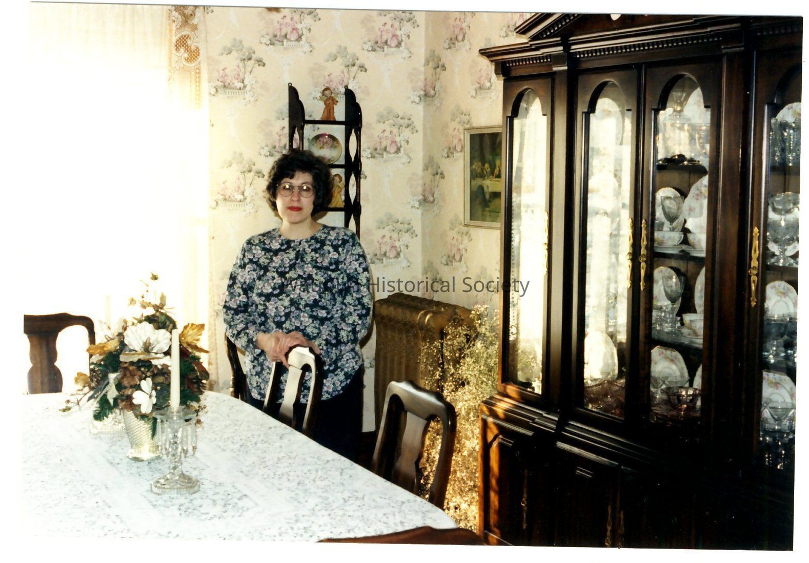 This photo is of Melody Kris, Inn Keeper, in the dining room, standing by the dining table, also a view of the beautiful china cabinet.Acquisition