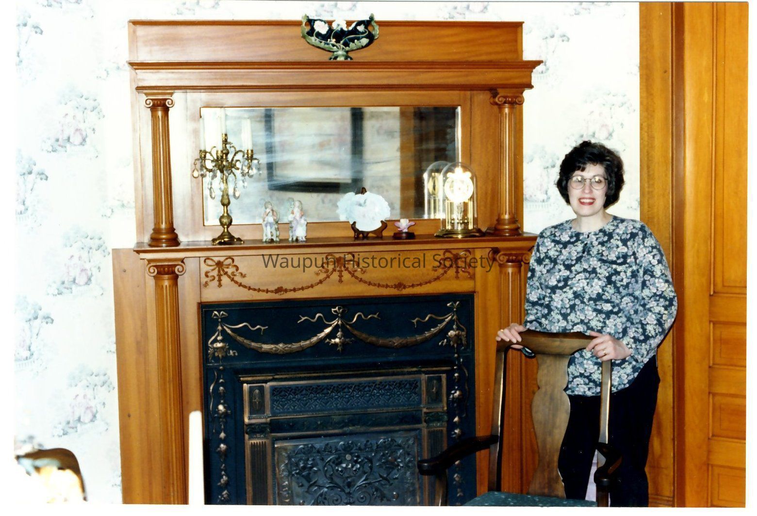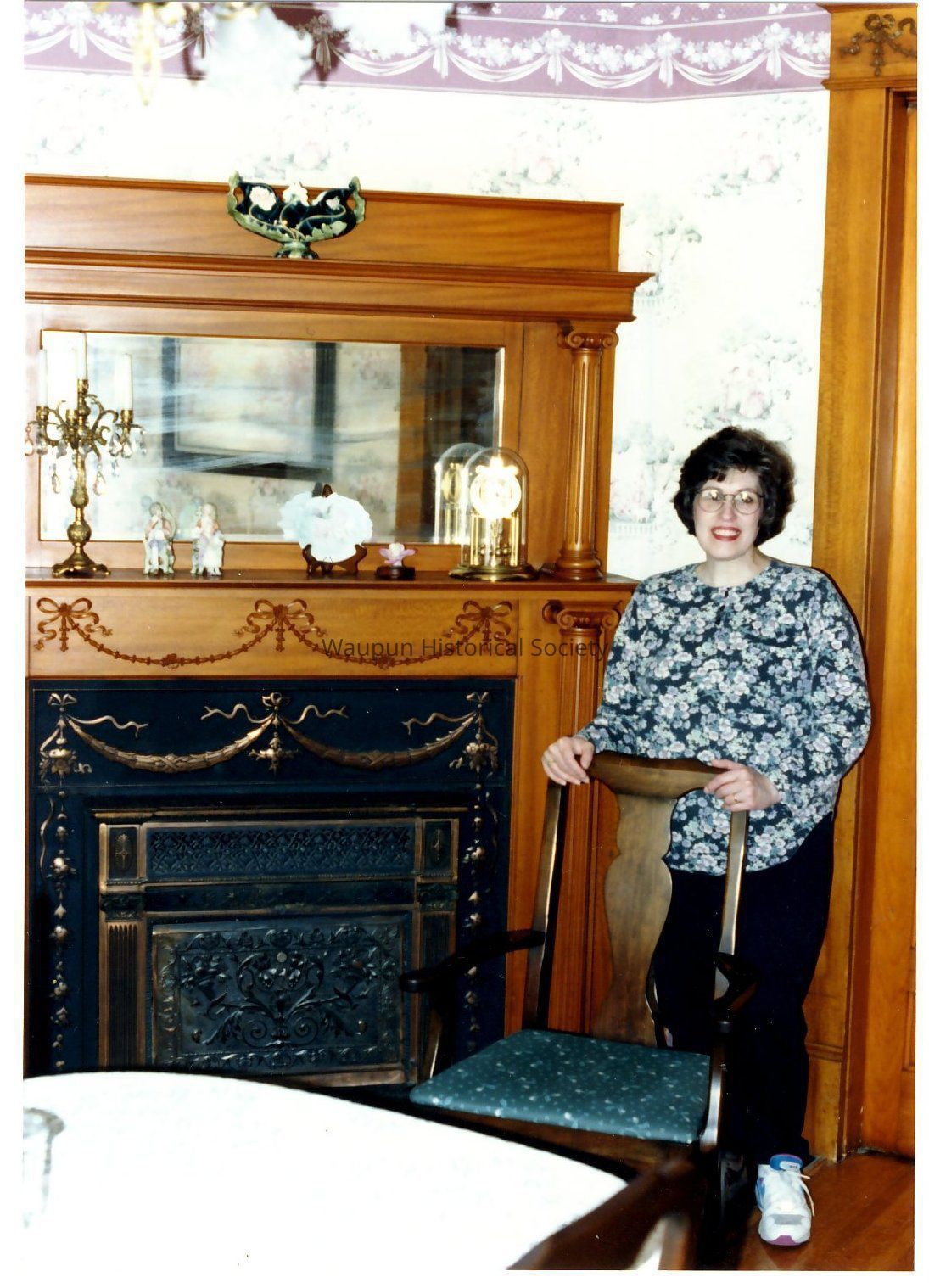 This photo is of Melody Kris, Inn Keeper, standing by what was once a fireplace, which appears to be in the dining room.Acquisition