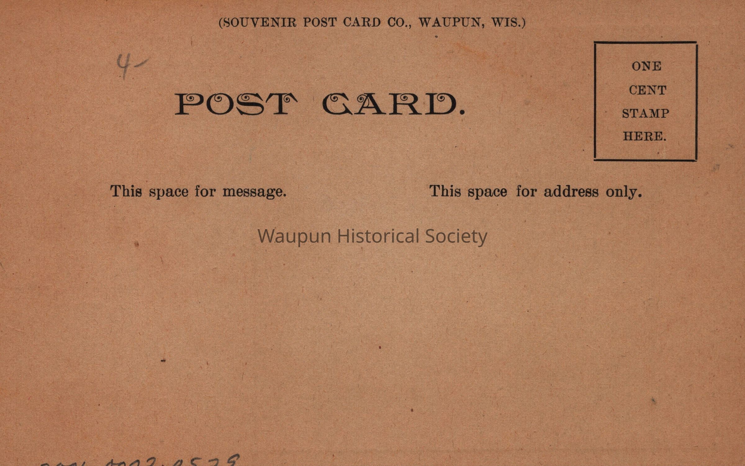Postcard, Church, St. Joseph Catholic, Dedicated March 1907. Waupun Churches. This colorized picture postcard shows the St. Joseph's Catholic Church of Waupun, Wis. It was donated by Jim Laird from his personal collection. This is an unused postcard. Printed on the upper right hand of the front of the card it says: "Church of St. Joseph, Waupun, Wis. Dedicated March 5, 1907.Acquisition