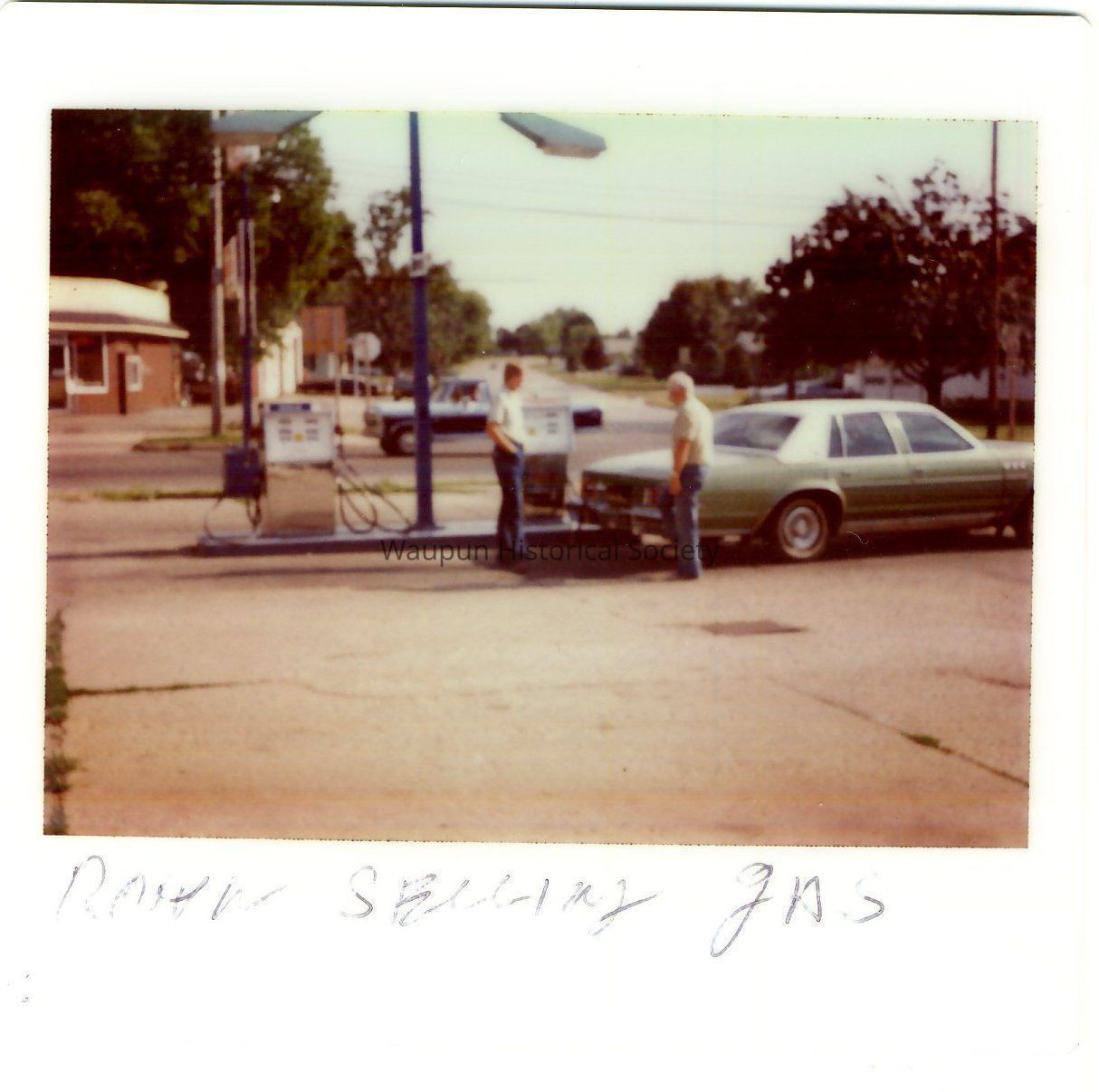Polaroid picture of Bishop's at 732 W. Main St., Waupun, WI. 1979. Rohn Bishop selling gas.Acquisition