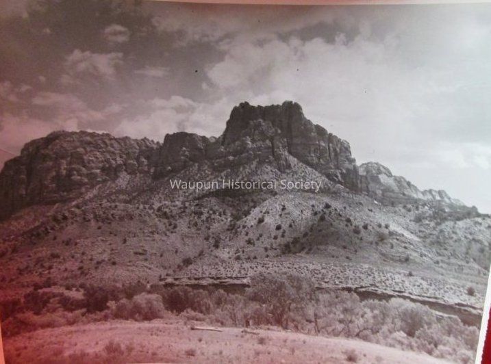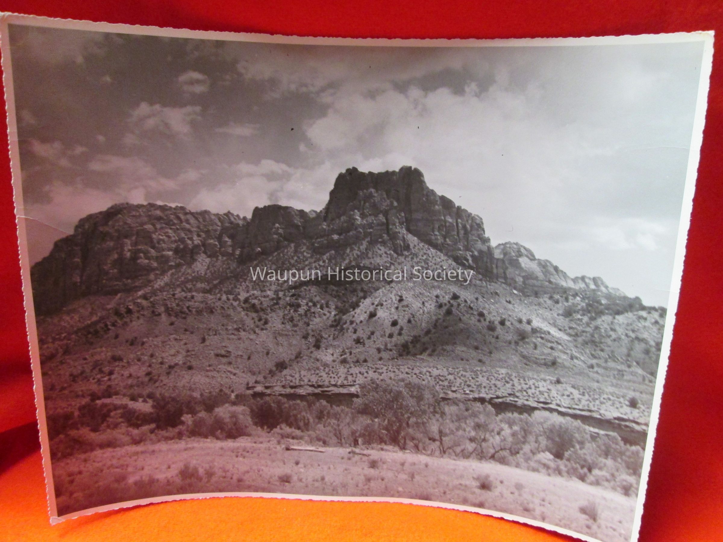 13 3/4" x 11" black & white photo of a mountain range; uncertain of where or when photo taken.Acquisition