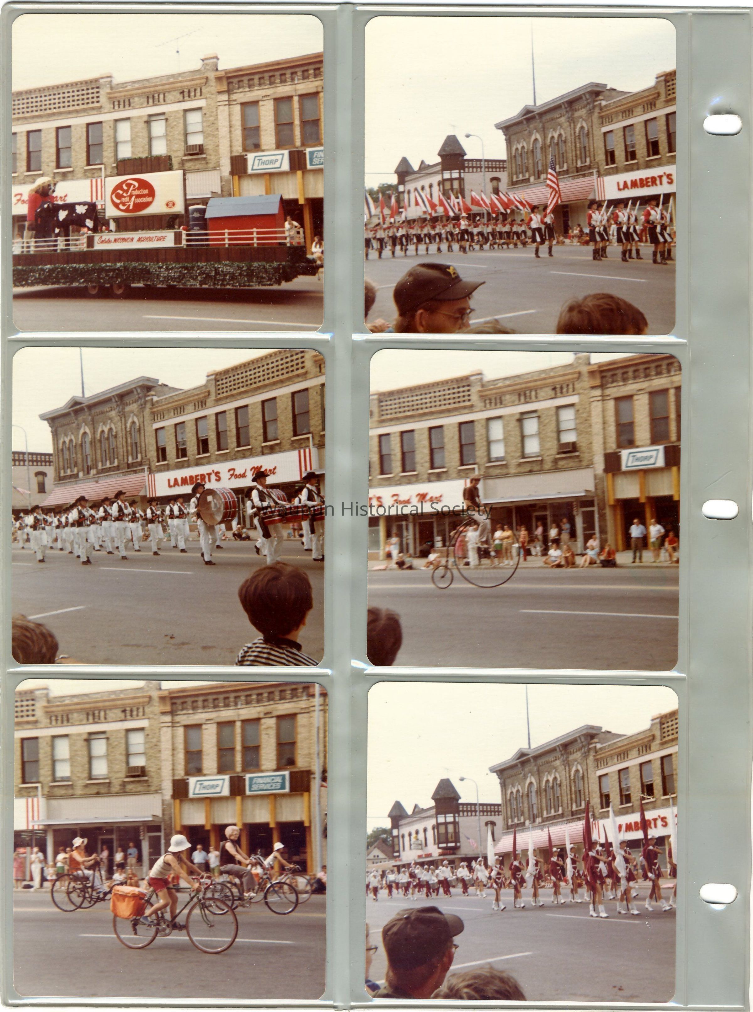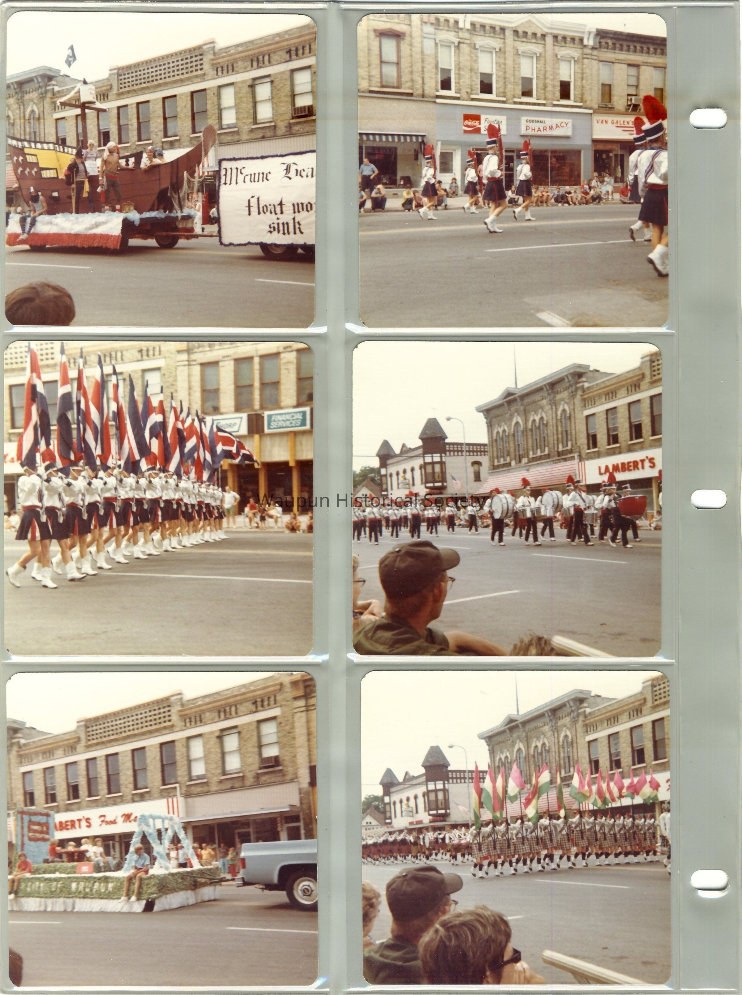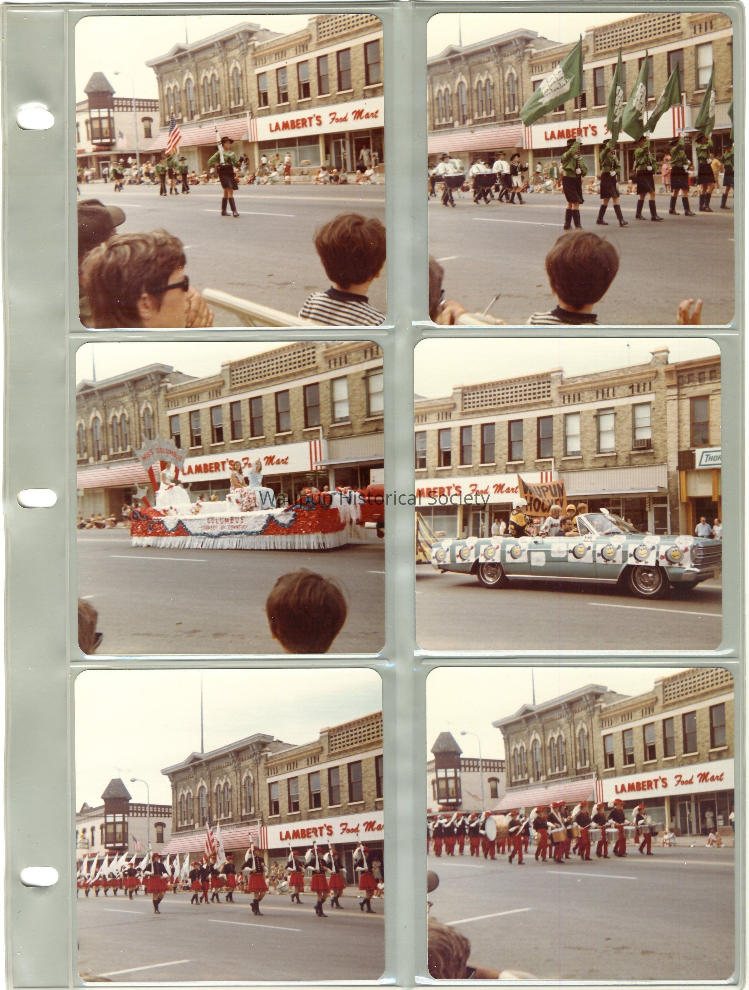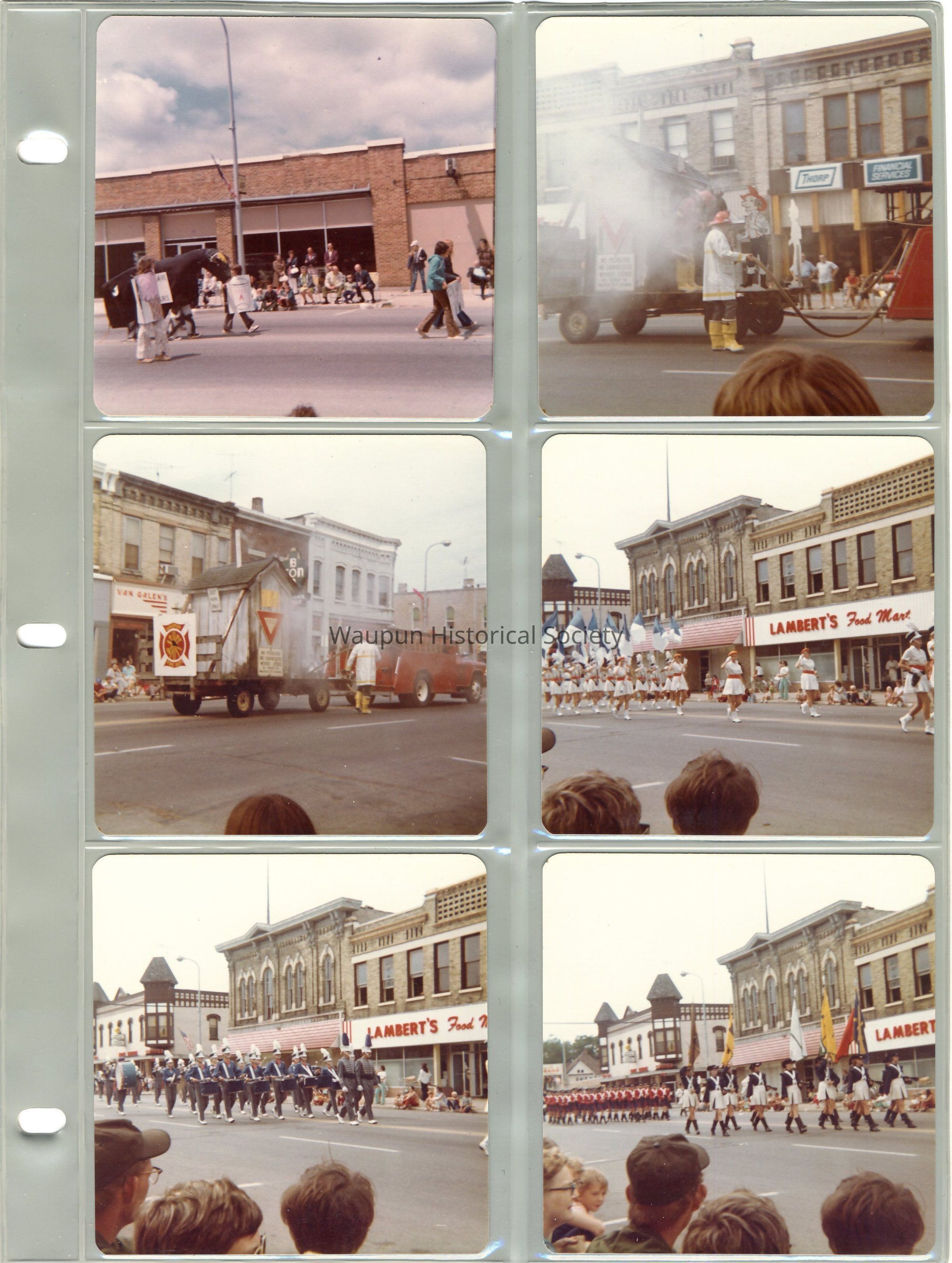 Pages from a photo album wtith 24 color photos of a parade down Main St. of Waupun, WI. Not sure of occasion for parade, but think it was in 1972 because of the businesses that are in view.Acquisition