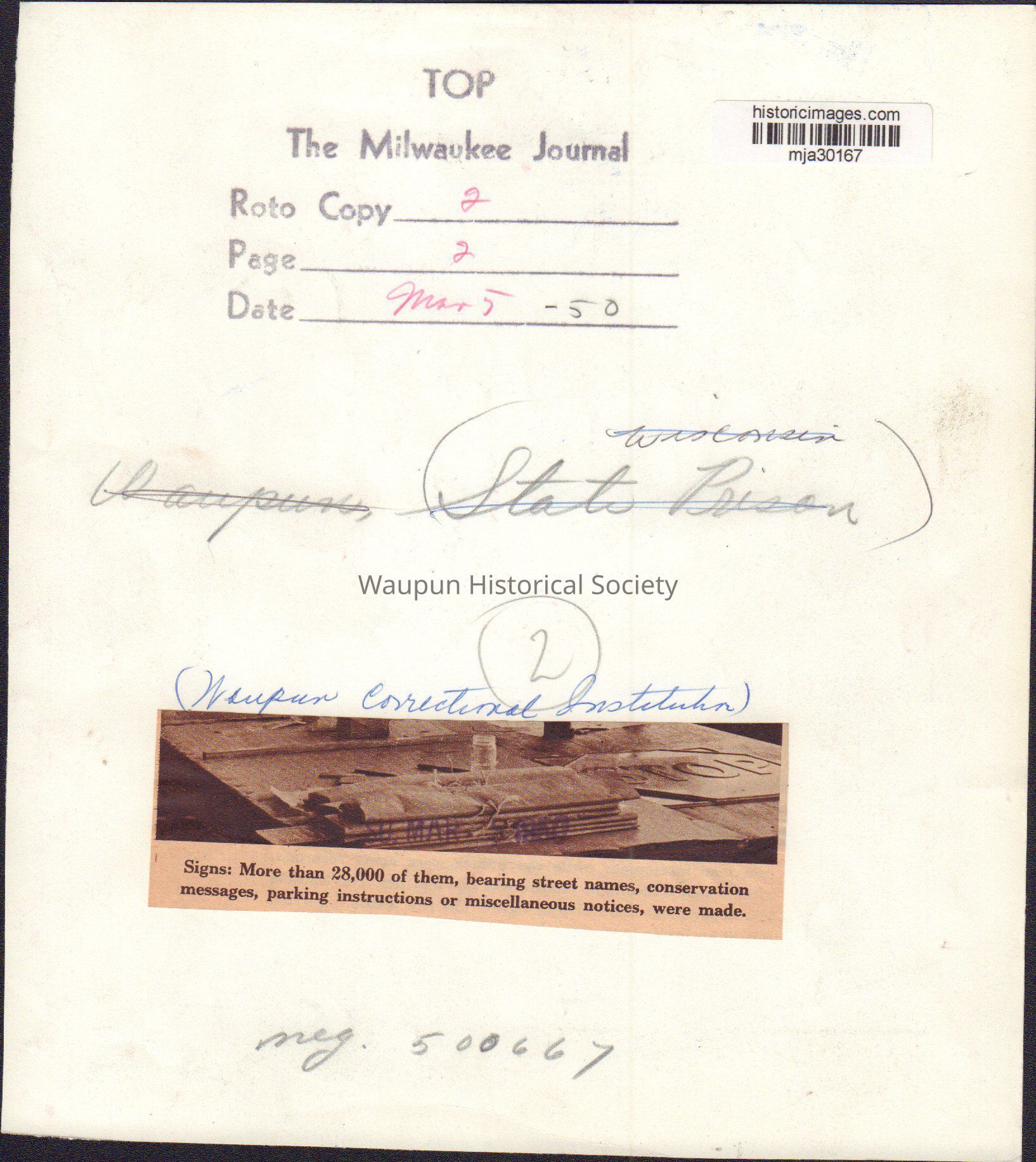 Photograph, Corrections, Wisconsin State Prison, Sign ShopEntry/Object ID