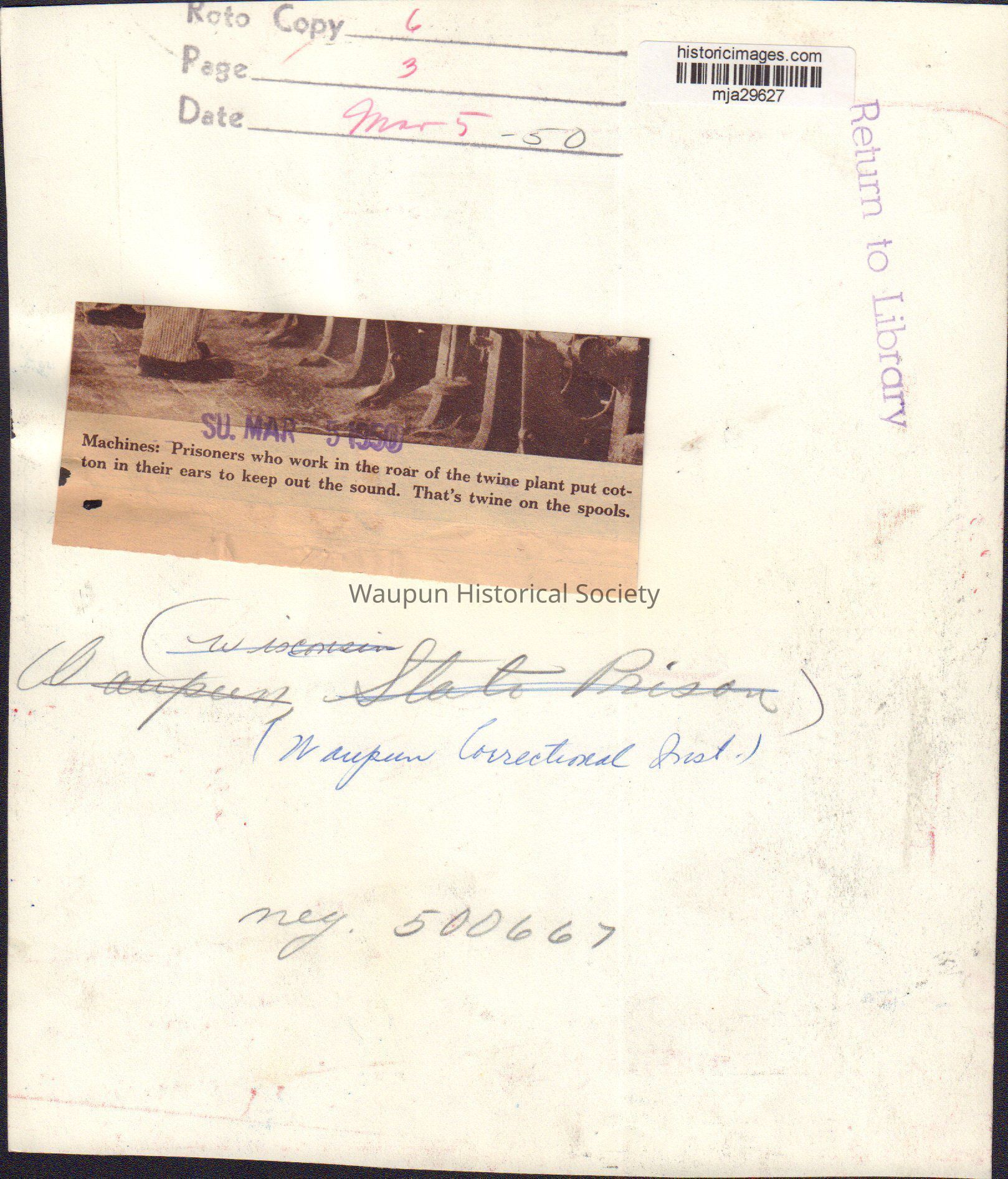 Photograph, Corrections, Wisconsin State Prison, Twine PlantEntry/Object ID