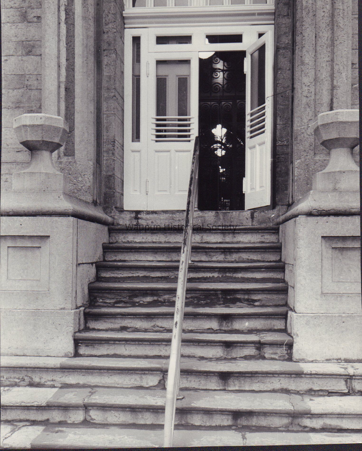 Photograph, Corrections, Wisconsin State Prison, Front Steps. Black and white photo from Waupun Correctional Institution - appears to be front steps leading to open door to prison.Acquisition