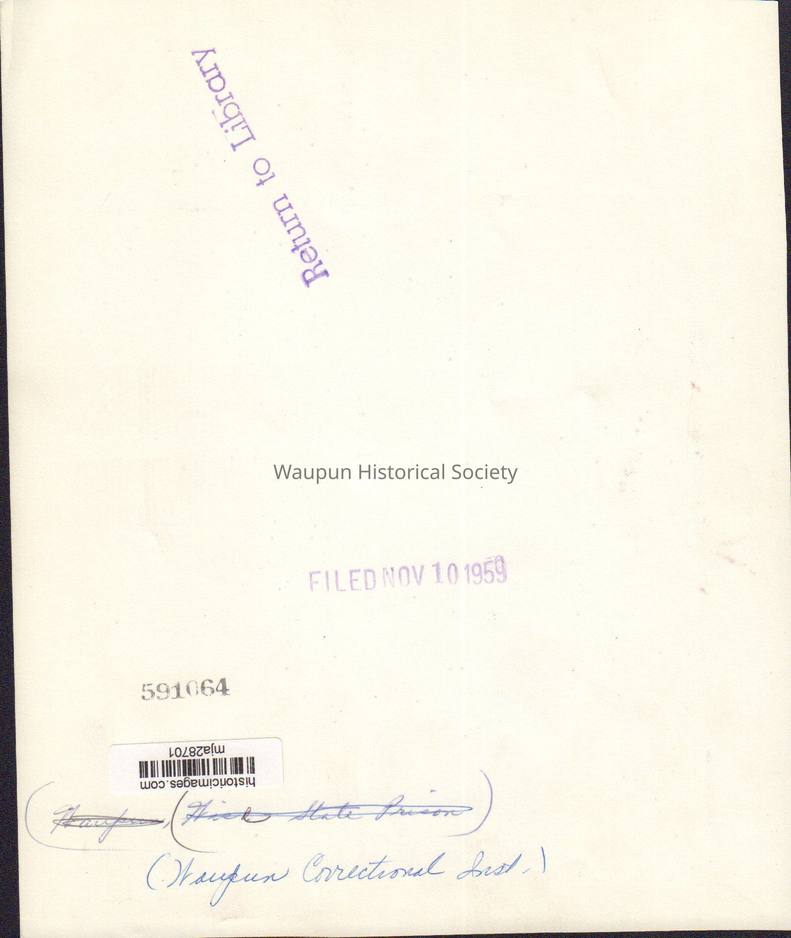 Photograph, Corrections, Wisconsin State Prison, TowerEntry/Object ID