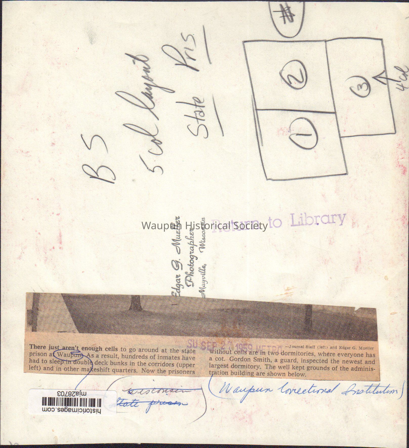 Newpaper clipping on back of photo from Journal Staff and Edgar G. Mueller.